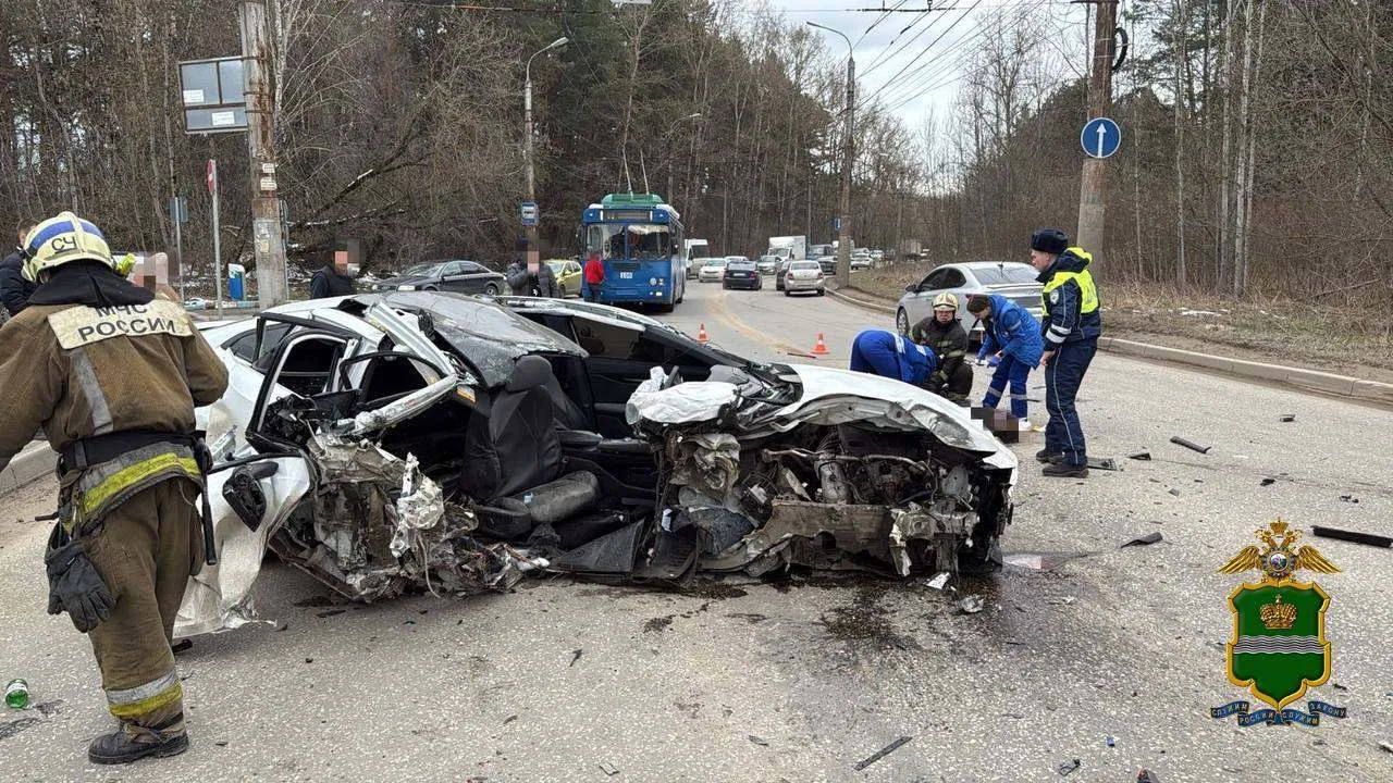После столкновения автомобиль воспламенился. Водитель получил травмы, ему понадобилась помощь медиков.