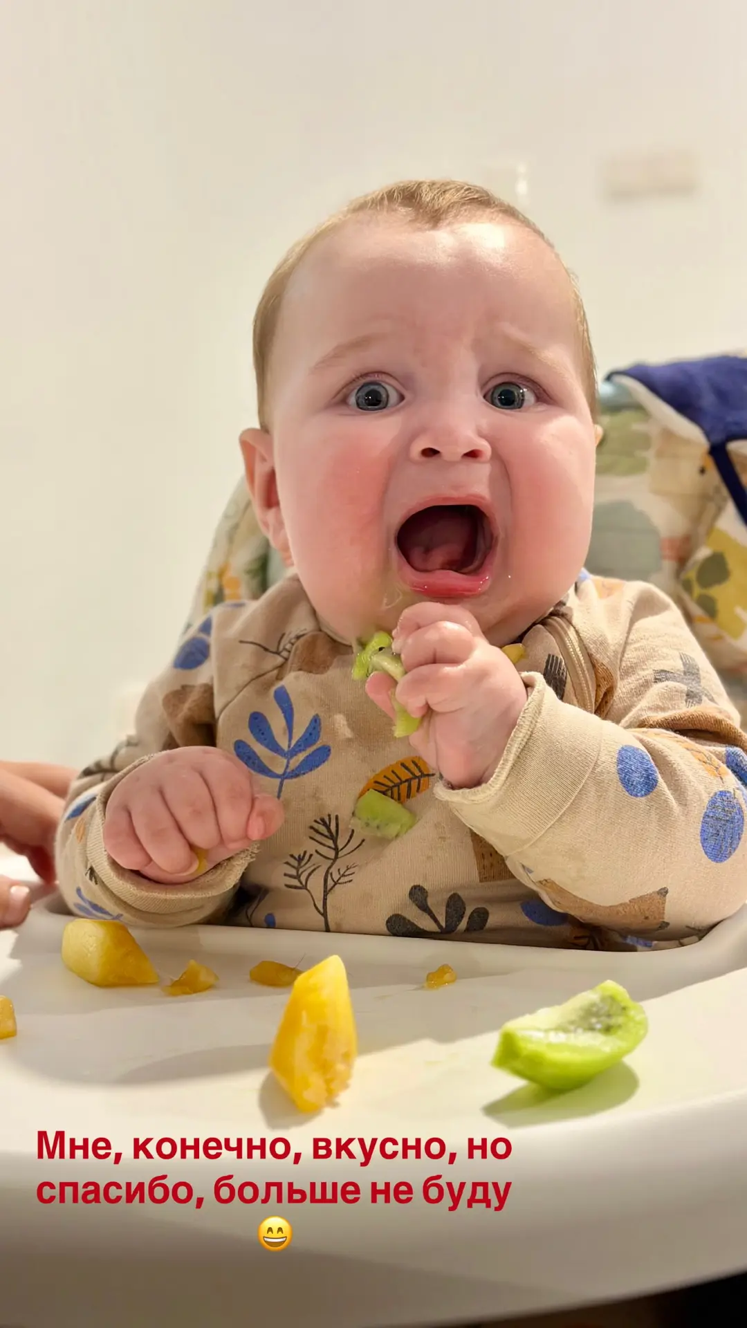 1️⃣ Ребенок улыбается и широко открывает рот.