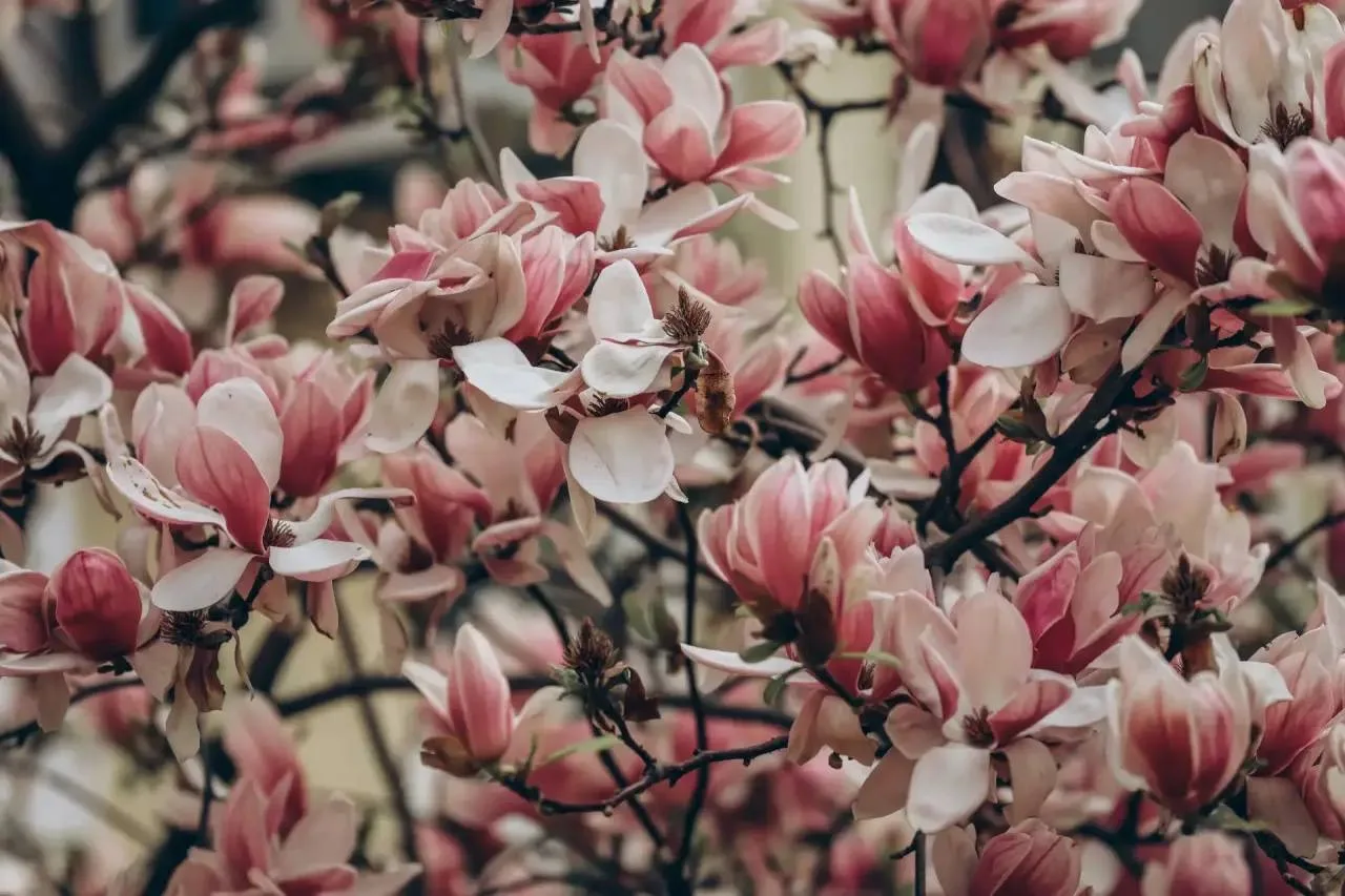 Сначала на ветках появляются огромные бутоны, похожие на тюльпаны, а затем они раскрываются в бокалы нежных розовых и белых оттенков. И всё это — пока еще нет листьев.