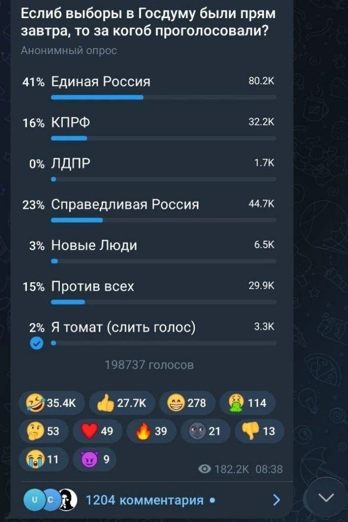 Он появился в комментариях в одном из каналов и прямо заявил, что в опросе 90% голосов за «Единую Россию» были накручены ботами.