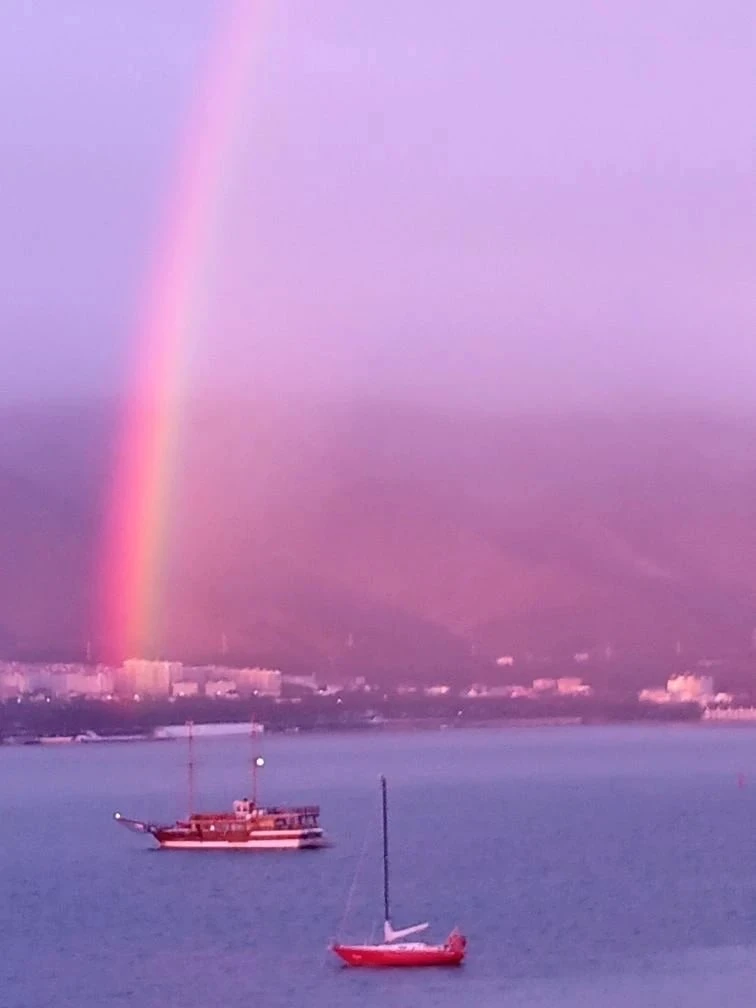 😍Пока в Краснодаре идёт снег, в Геленджике после дождя небо расцветила радуга.