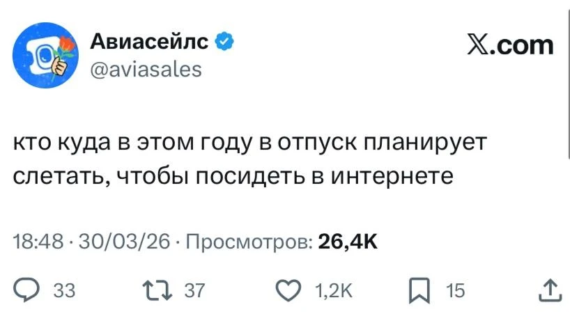 Авиасейлс тонко чувствуют главную причину путешествий в 2026 году 😁