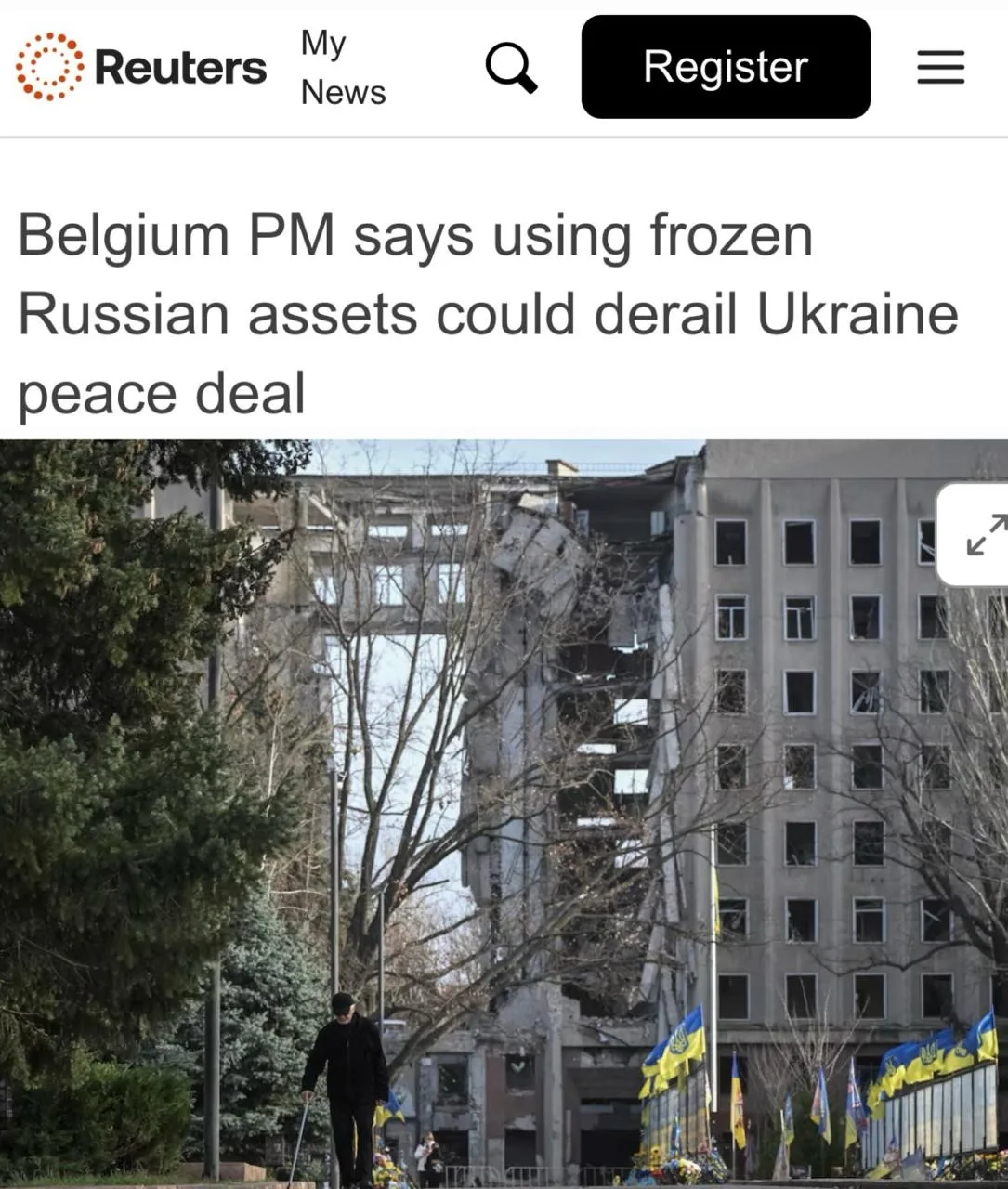 «Премьер-министр Бельгии Барт Де Вевер заявил, что план Европейского союза использовать замороженные государственные активы России для финансирования Украины может поставить под угрозу возможность заключения потенциального мирного соглашения, способного положить конец почти четырёхлетней войне.
