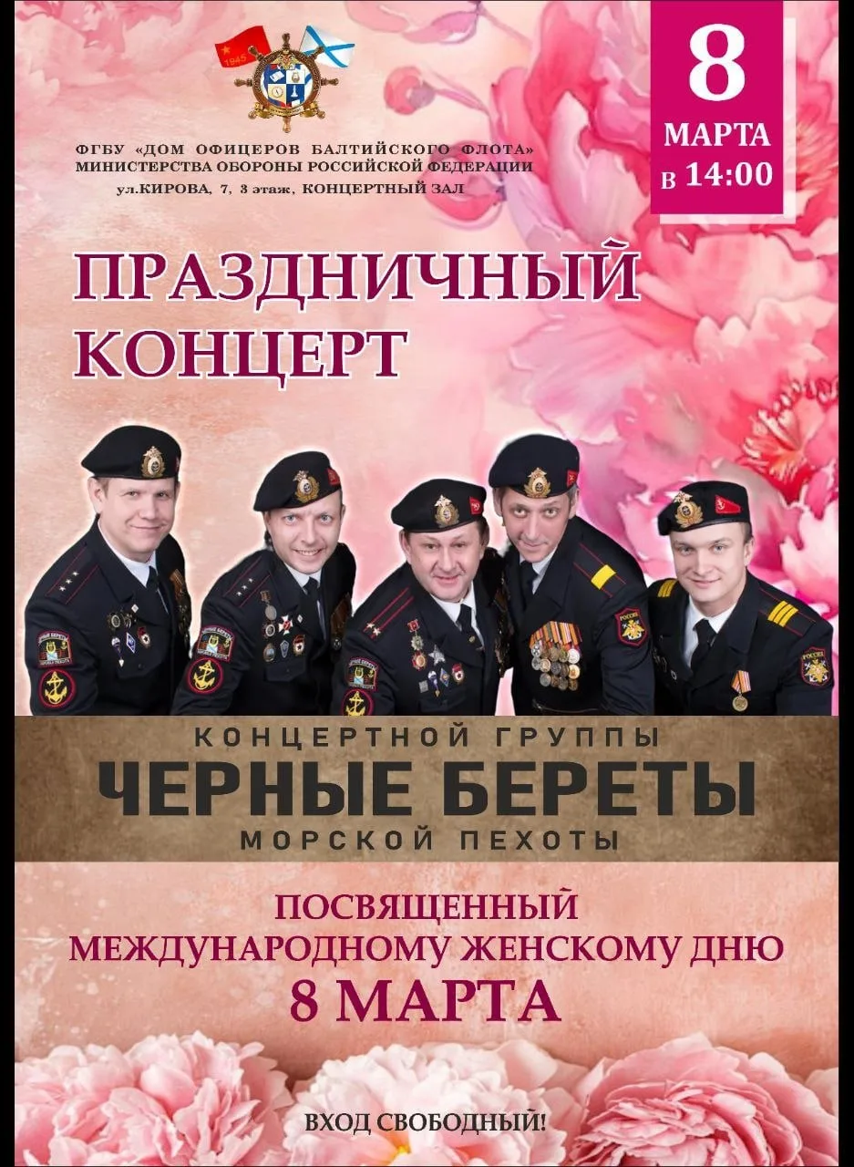 Гостей приглашают на праздничный концерт группы морской пехоты «Чёрные береты».