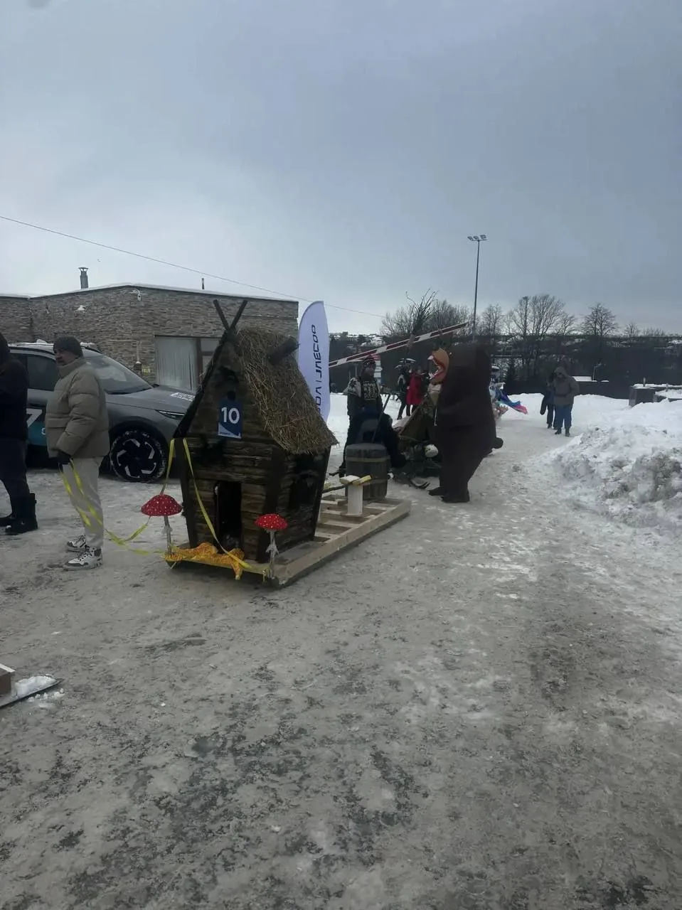 На горнолыжном склоне в Квани встретились Добрыня, телевизор, туристическая палатка с медведем, бабки-ёжки и многие-многие другие.