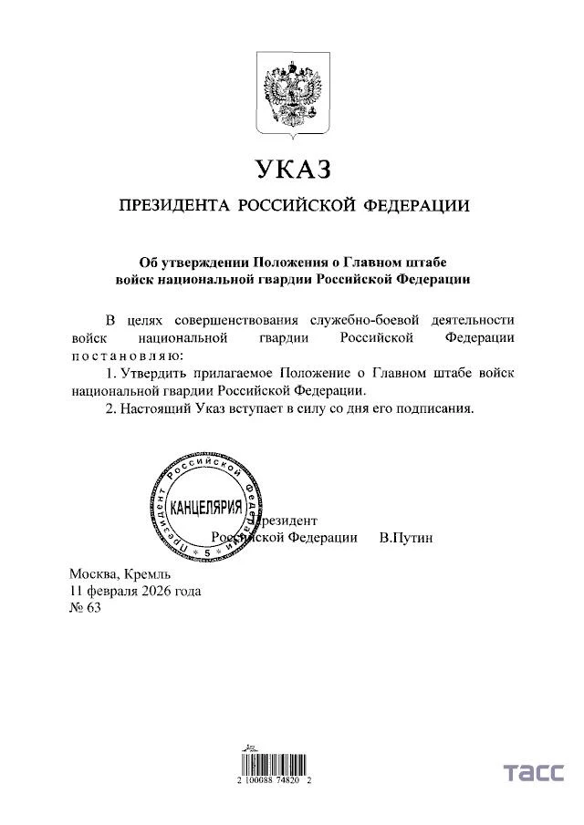 Президент Путин утвердил положения о Главном штабе войск национальной гвардии РФ