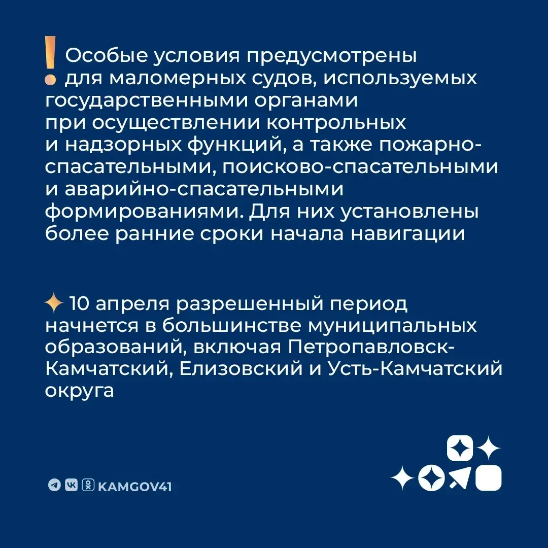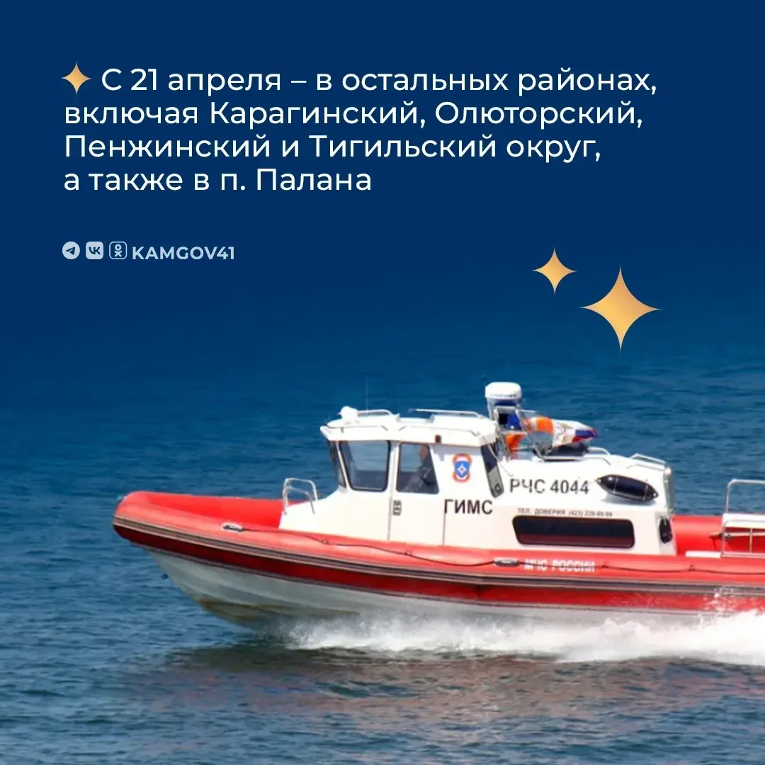 📃Согласно постановлению Правительства Камчатского края навигация для гражданских маломерных судов откроется в разные даты в зависимости от географического расположения муниципальных образований.