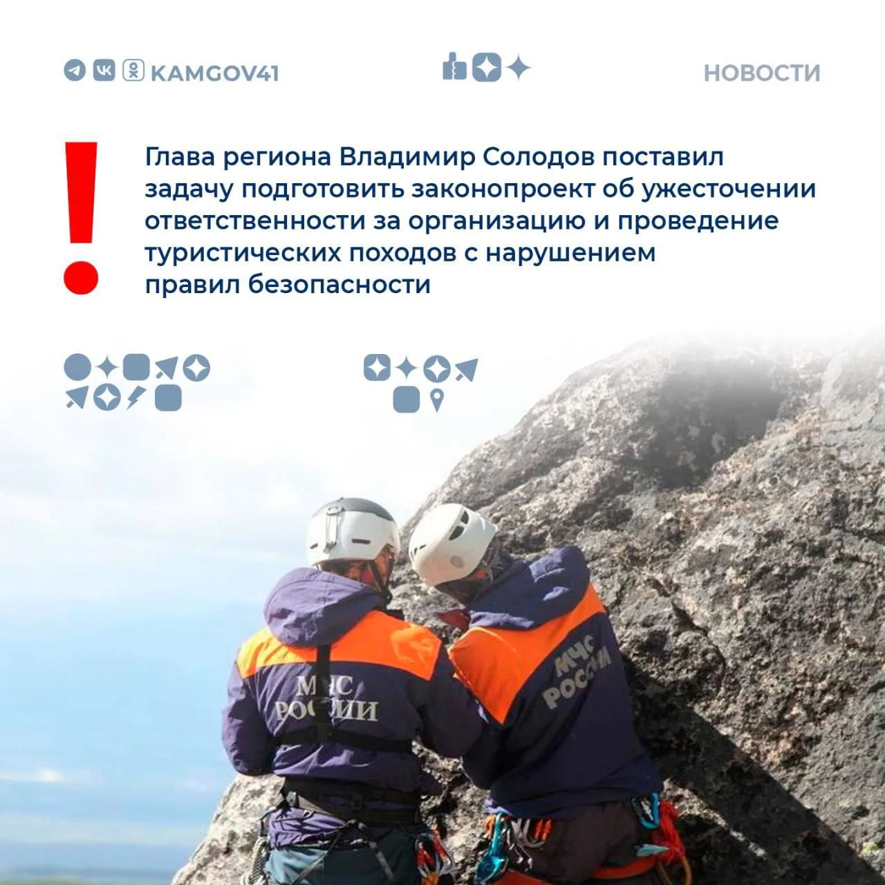 ❗️Ужесточить ответственность за организацию и проведение туристических походов с нарушением правил безопасности потребовал глава Камчатки Владимир Солодов