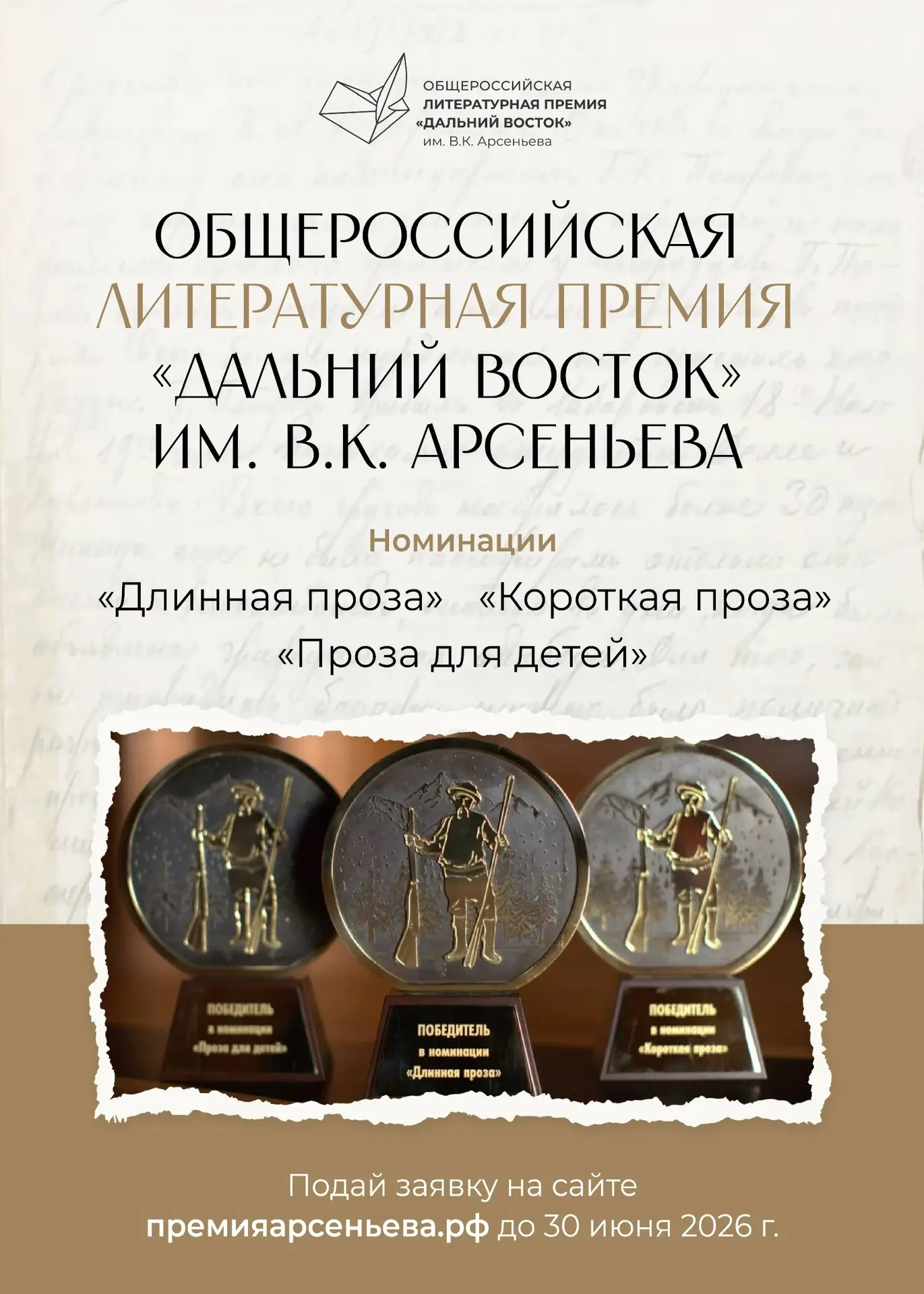 🔖Прием заявок продлится до 30 июня 2026 года. К участию приглашают авторов, создающих произведения на русском языке, отражающие историю, современность или будущее Дальнего Востока России, в любом литературном жанре.