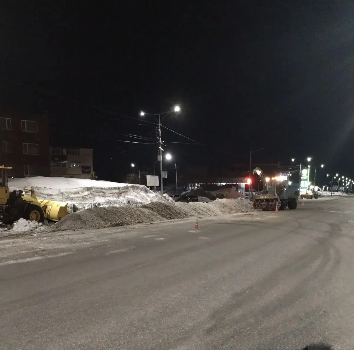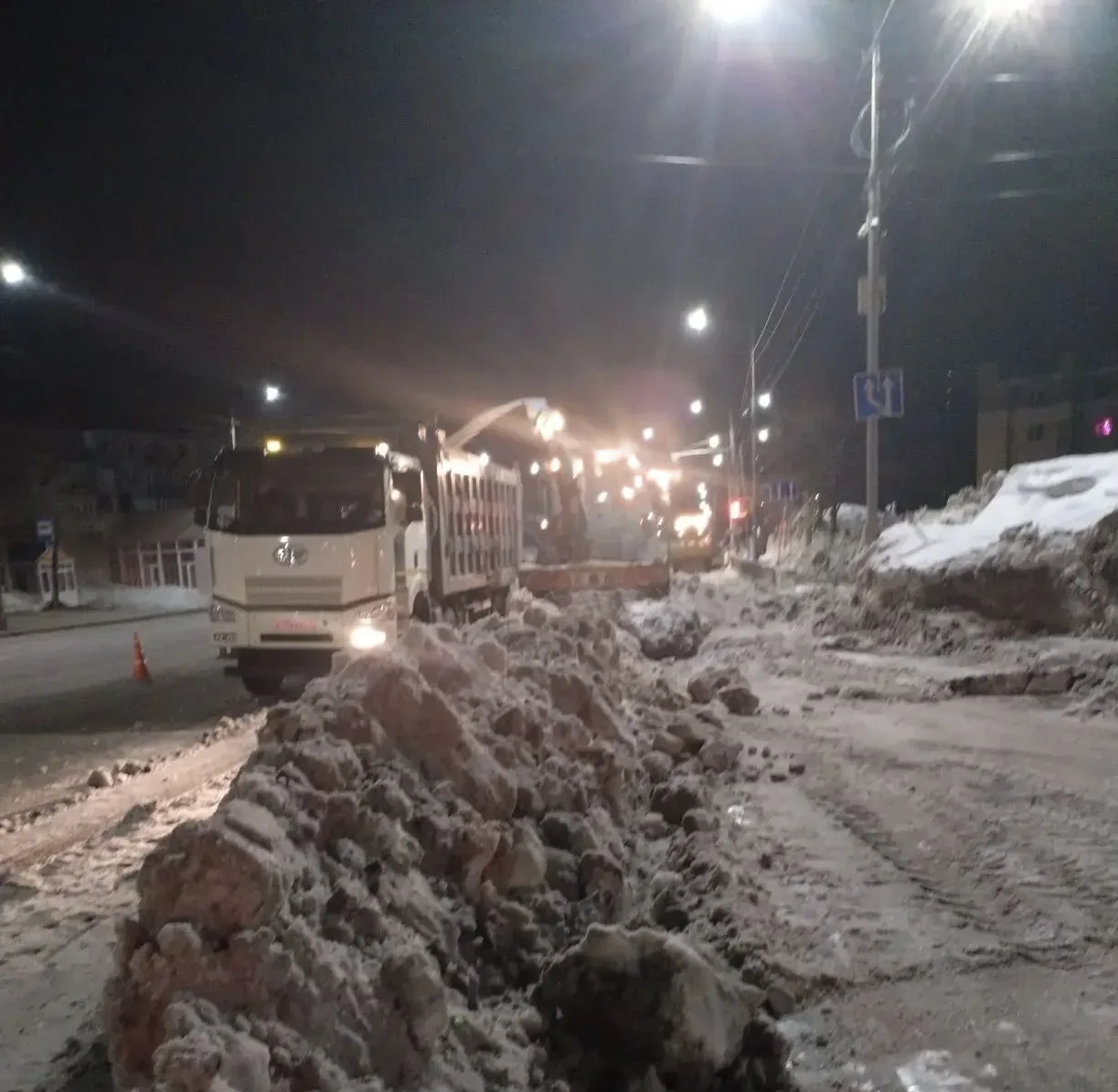 🚜Работы по вывозу снега и посыпке противогололедными материалами по «красной линии» в Петропавловске-Камчатском продолжаются в круглосуточном режиме