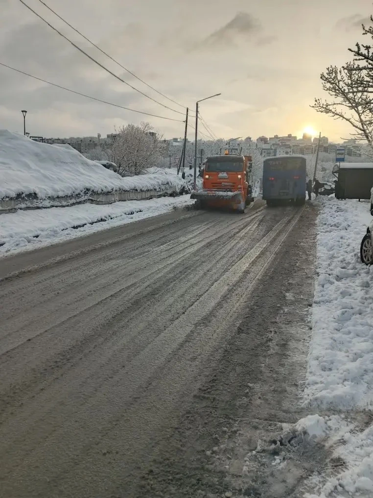 🚧Дорожные службы Петропавловска-Камчатского в круглосуточном режиме ликвидируют последствия снегопада