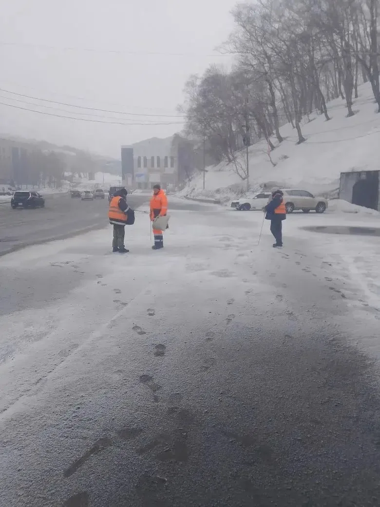 ❗️В Петропавловске-Камчатском ведутся работы по обслуживанию дорог в период действия циклона