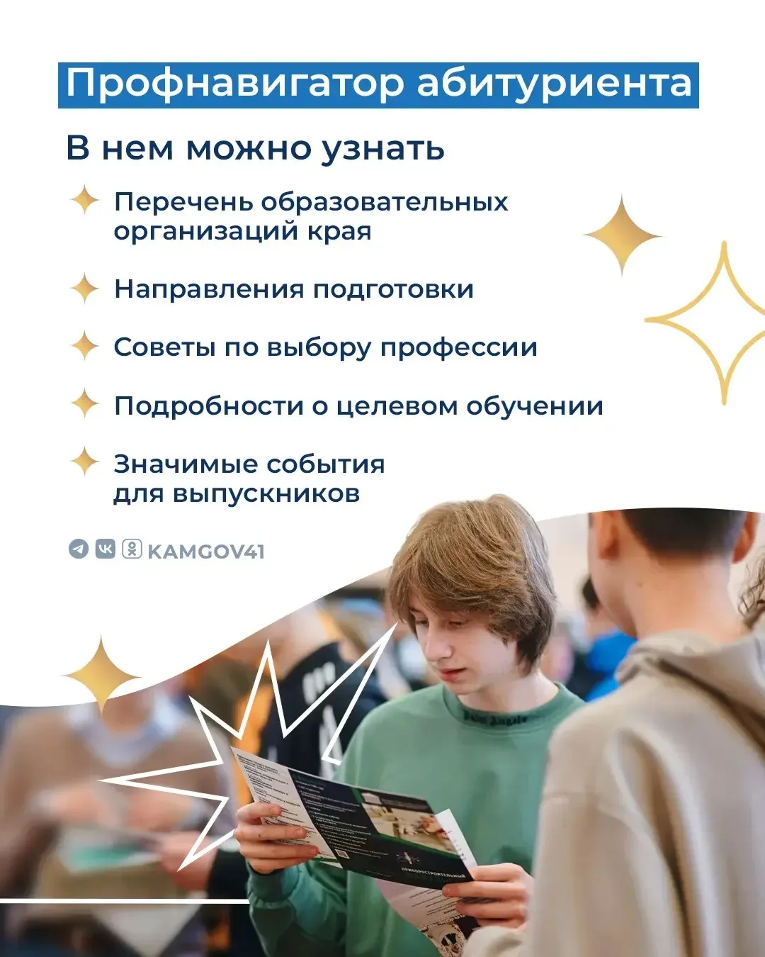 ❓Ребята смогут узнать, по каким востребованным профессиям, специальностям и направлениям подготовки будет осуществляться обучение в техникумах, колледжах и вузах Камчатского края в 2026/27 учебном году, а также ознакомиться с карьерными перспективами и возможными местами работы.