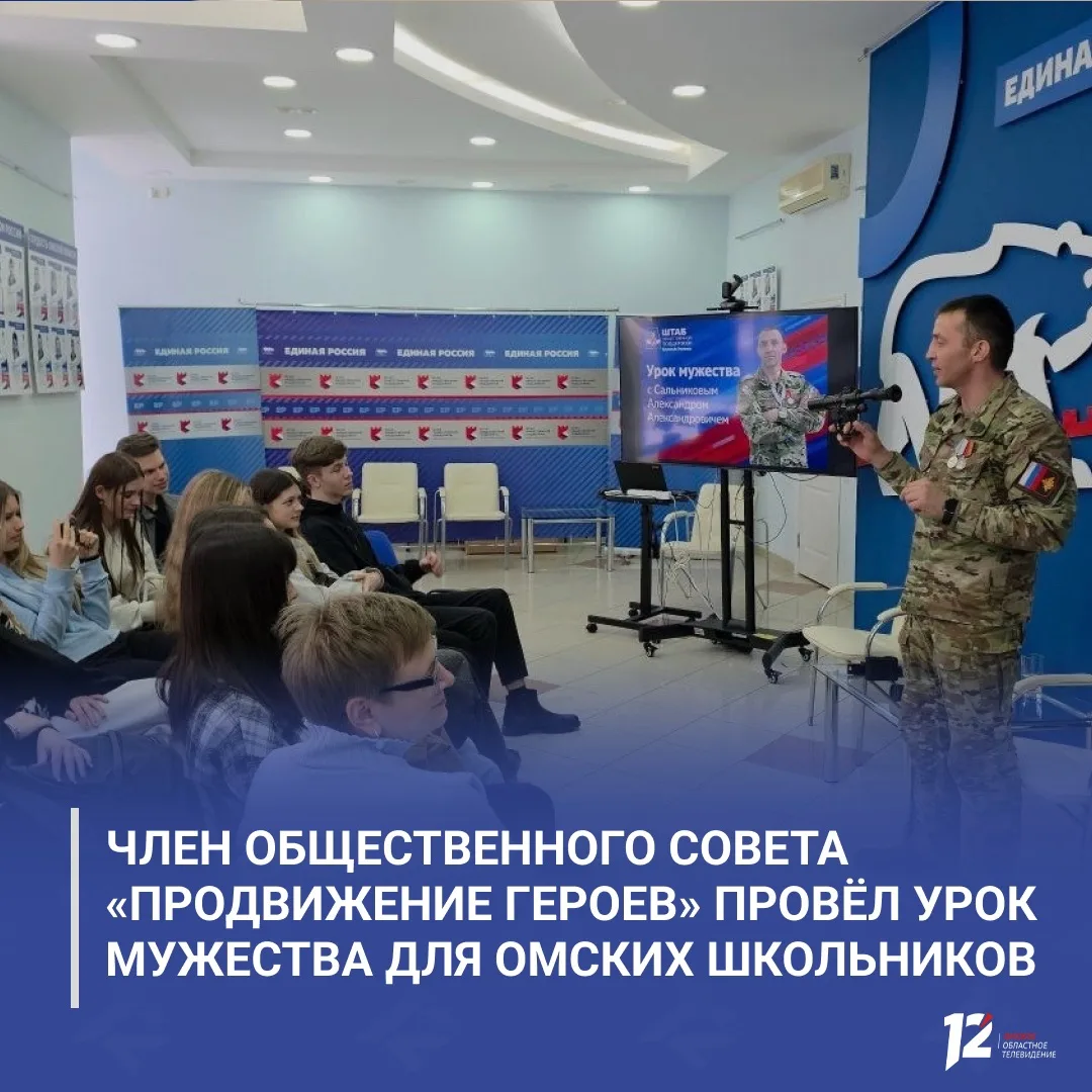 🎖️ Член Общественного совета «ПРОдвижение ГЕРОЕВ» провёл Урок мужества для омских школьников