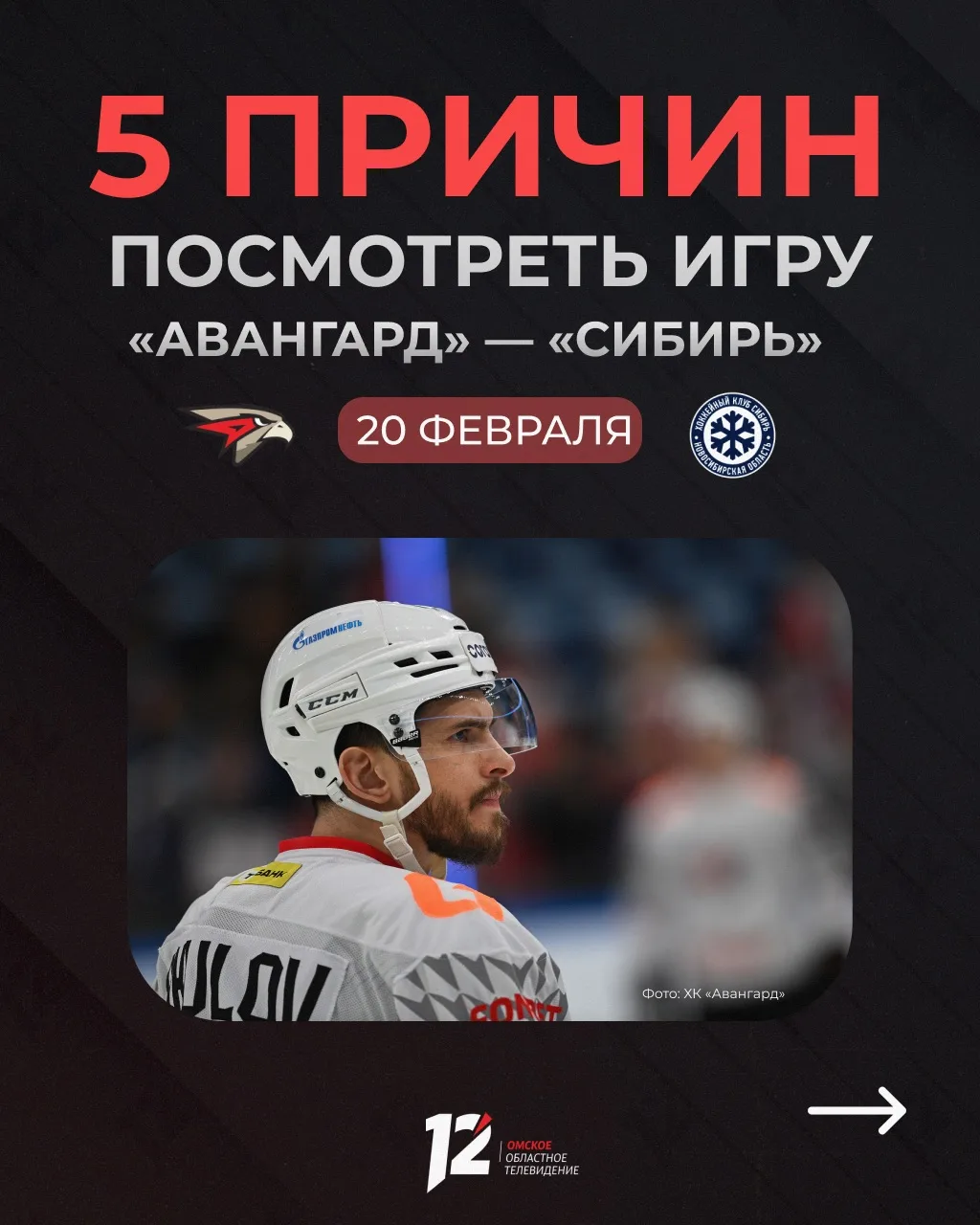 Мы подготовили 5 причин посмотреть матч «Авангард» — «Сибирь» на 12 канале 👆