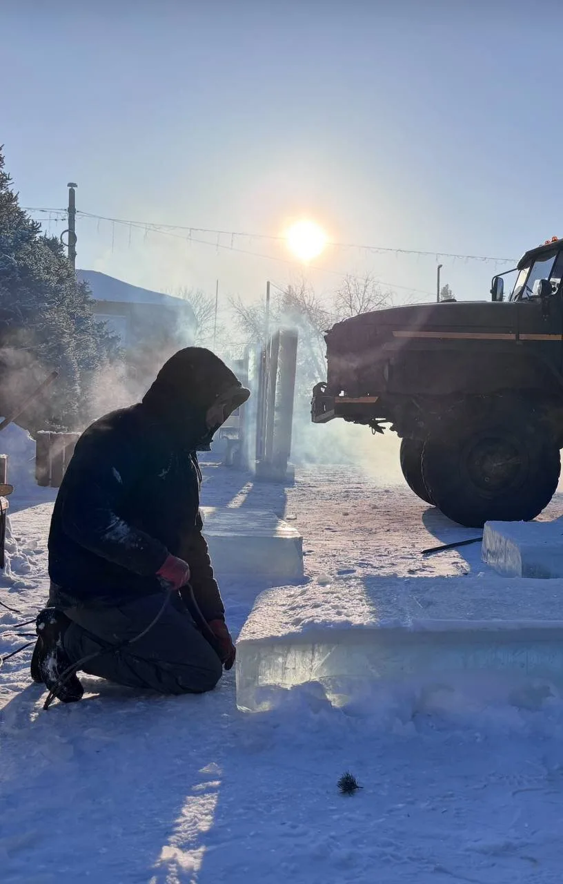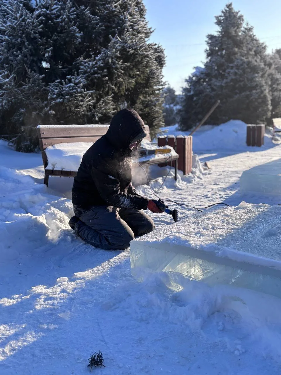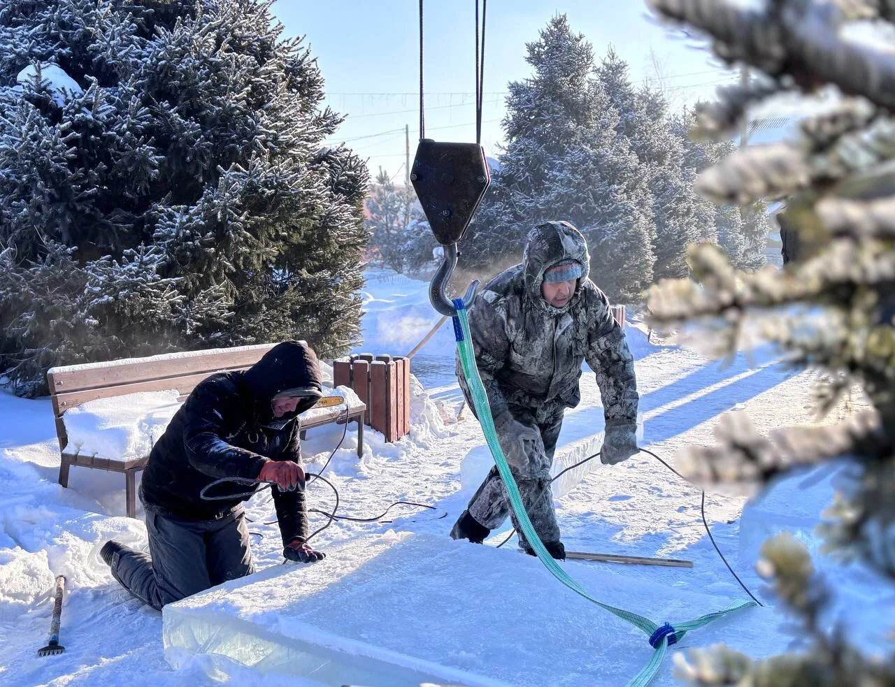В поселок прибыли скульпторы-резчики из Красноярска и уже установили первые ледяные блоки. В ближайшие дни мастера приступят к созданию волшебных ледовых фигур, которые станут украшением зимнего городка.