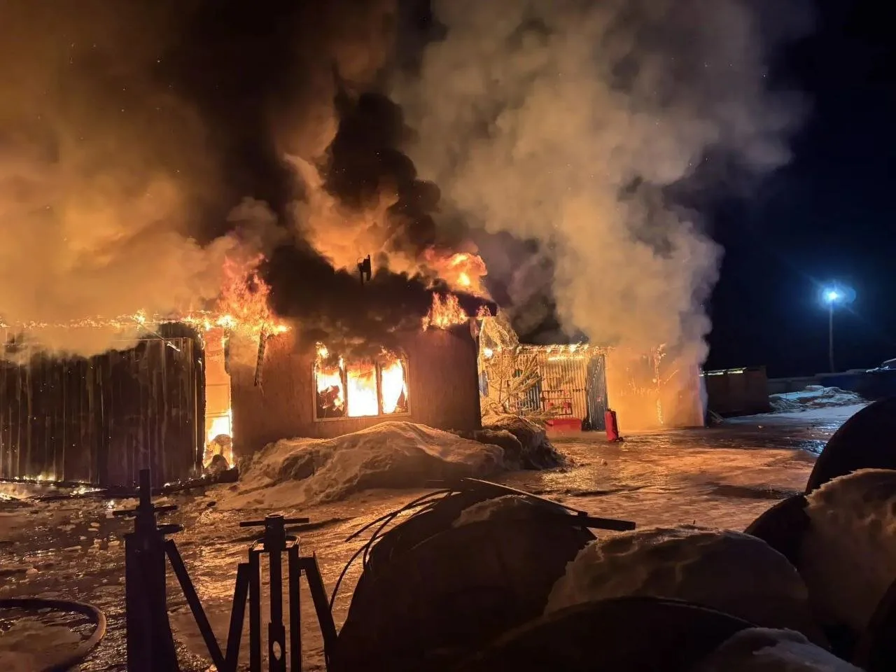 На этой неделе в вахтовом посёлке рабочих у деревни Первое Мая произошёл крупный пожар. Посёлок расположен в Ирбейском районе.