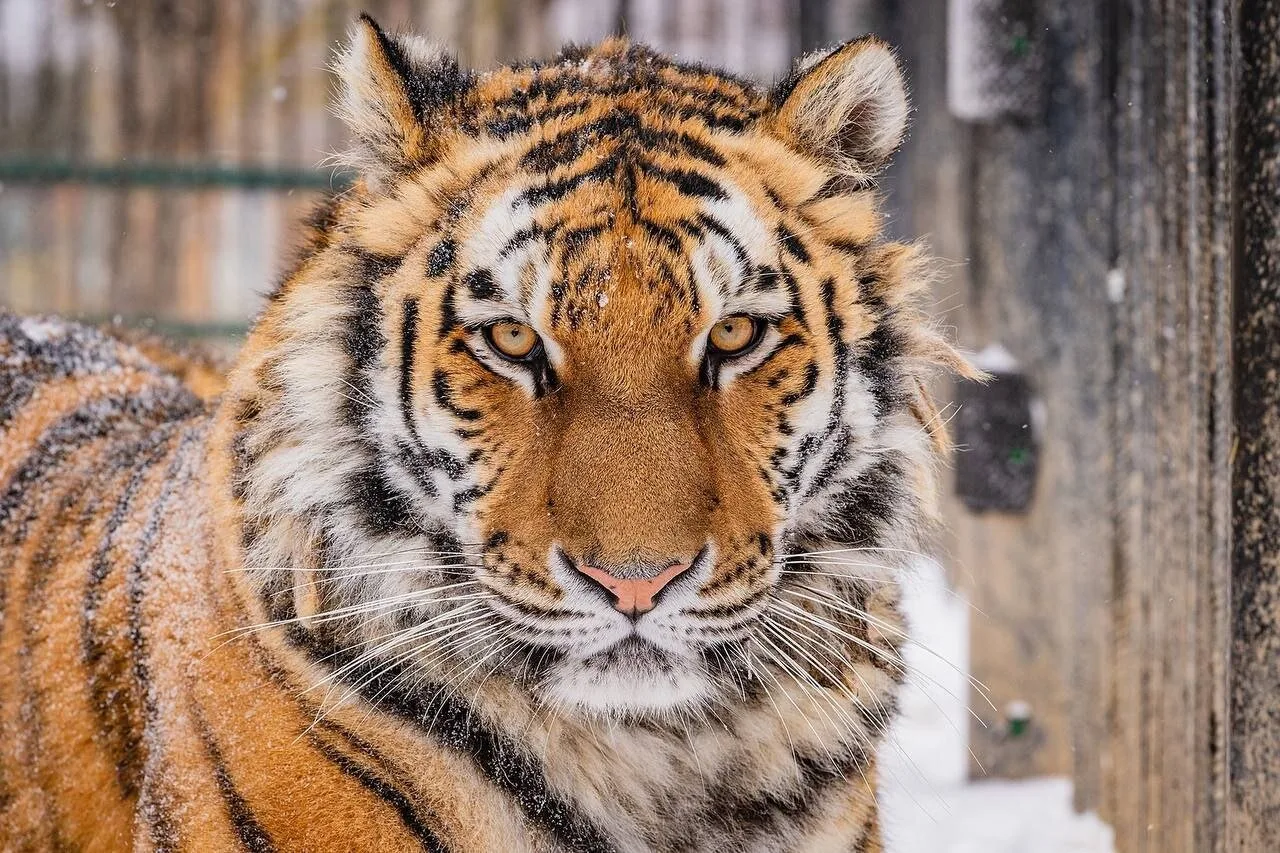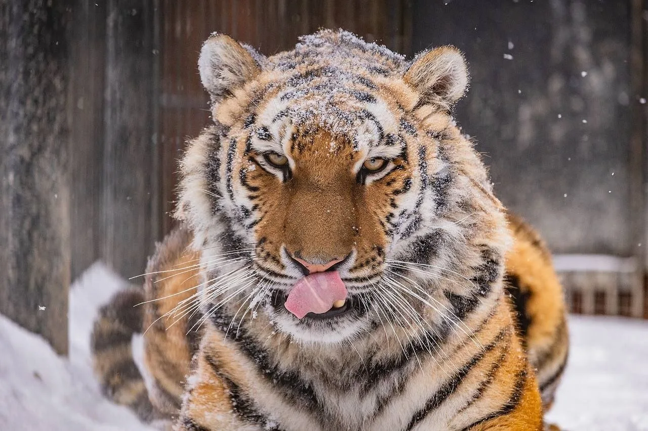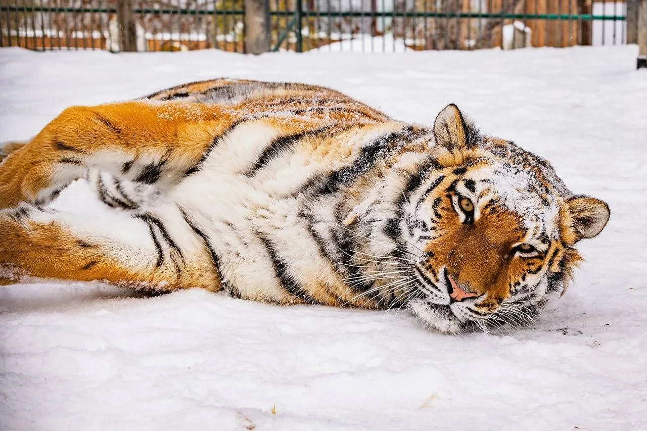 Амурская тигрица Рокси принимает снежные ванны в парке «Роев ручей»