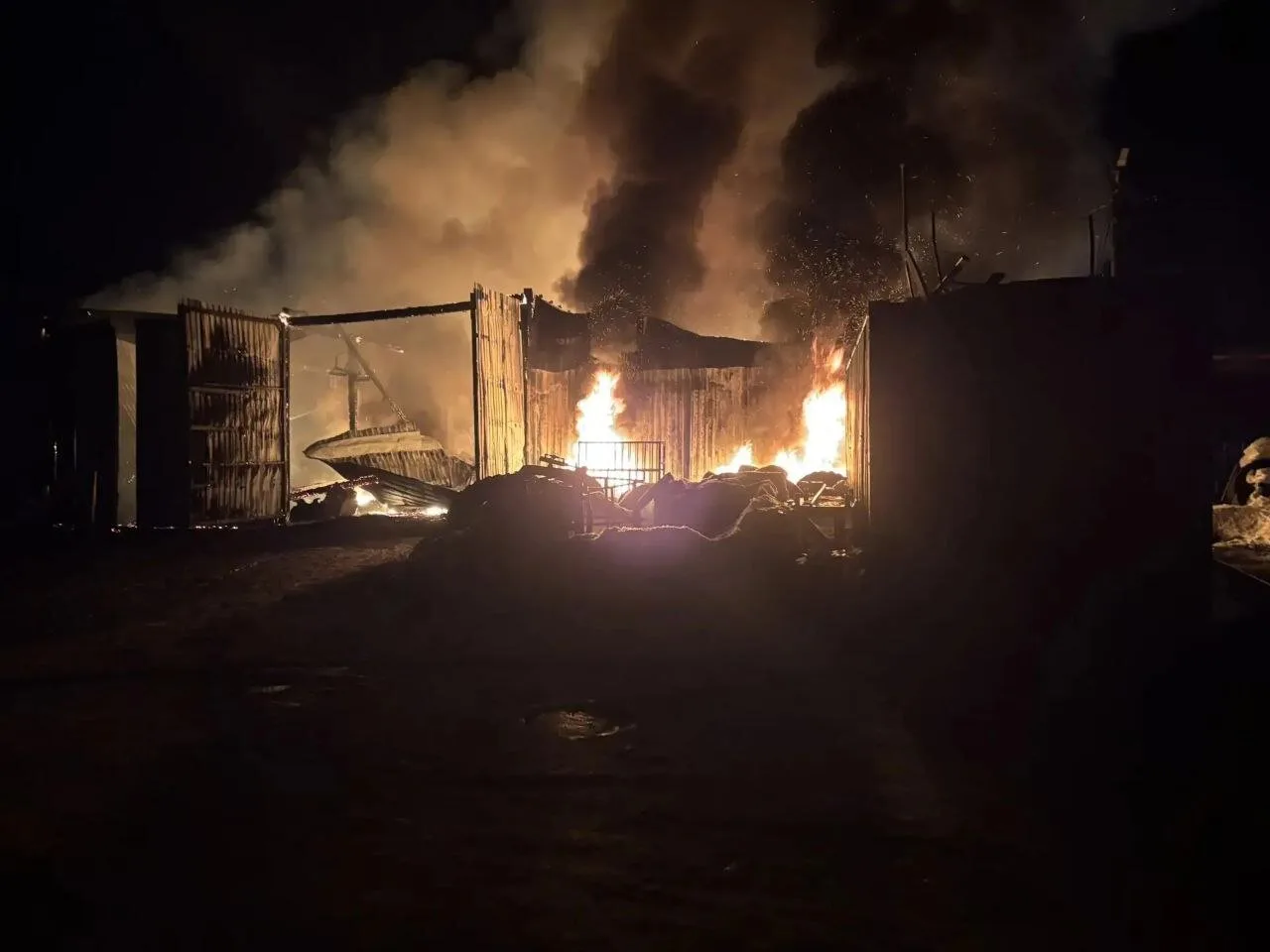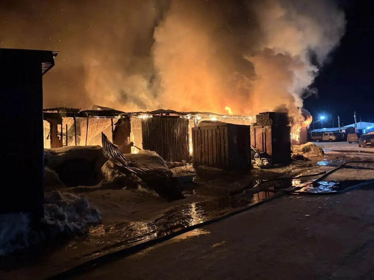 По предварительной информации, погибших и пострадавших нет, техника не повреждена. Однако строения полностью уничтожены огнём.