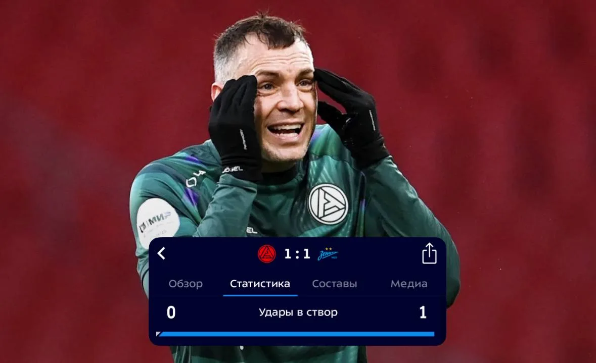 Акрон сыграл вничью с Зенитом, не нанеся ни одного удара в створ: защитник газовых Сантос забил мяч в свои ворота. На 95-й минуте тольяттинцы даже могли вырвать победу, однако Дзюба не реализовал пенальти.