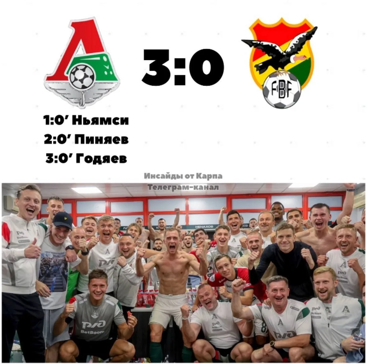🇧🇴⚽️ Локомотив победил Боливию, которая во вторник сыграет с Россией: встреча длилась 45 минут и завершилась со счетом 3:0. В составе команды Галактионова отличились Ньямси, Годяев и Пиняев, вышедший на поле впервые с начала августа.