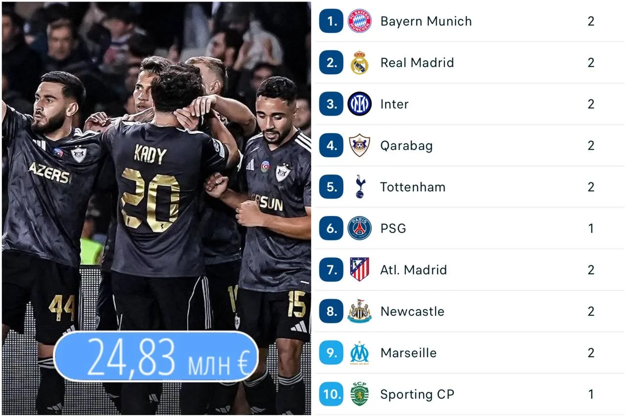 Сенсационно побеждает Бенфику с Копенгагеном в ЛЧ и опережает в таблице Тоттенхэм, Атлетико, Челси, Ливерпуль и Марсель.