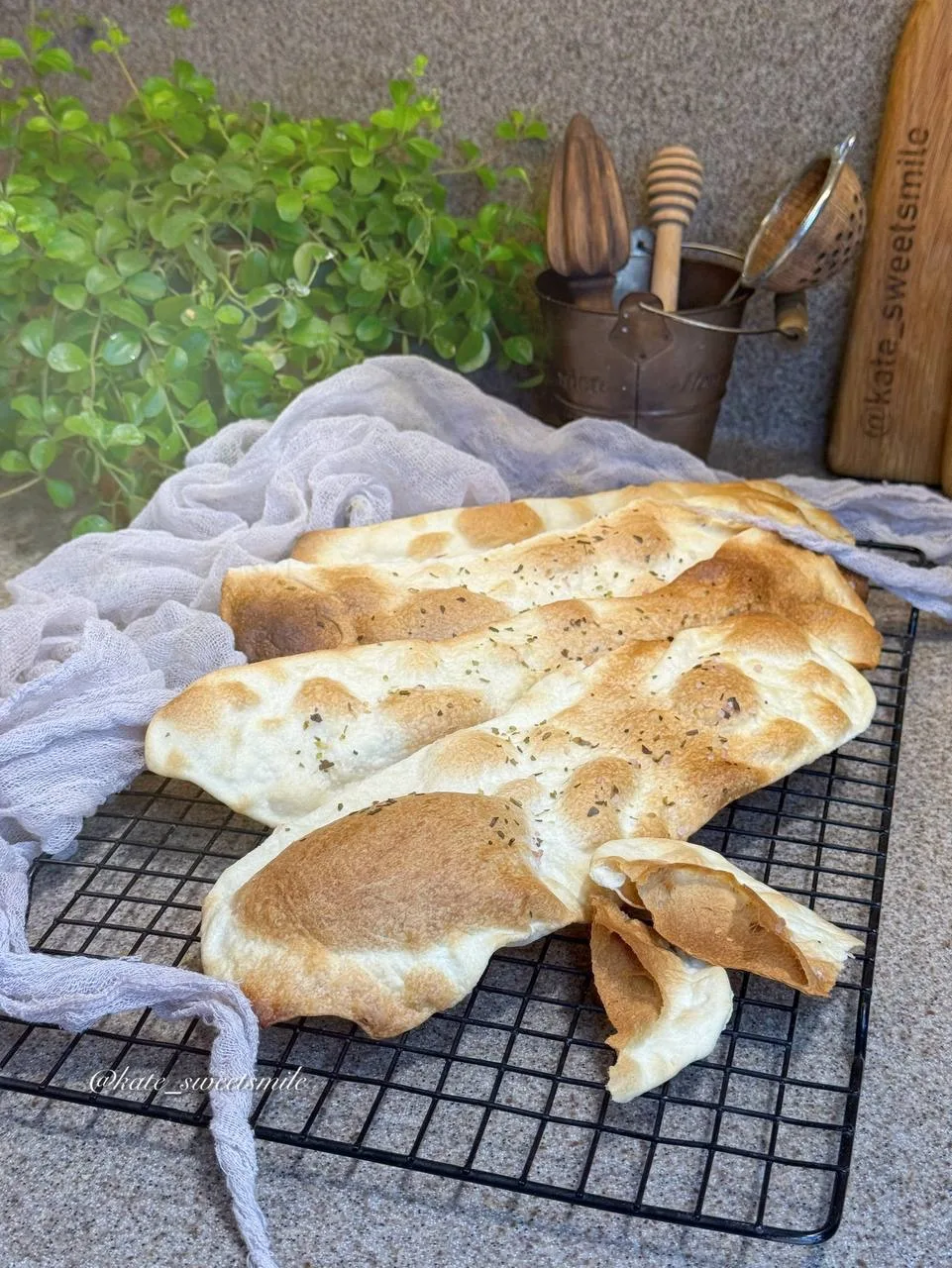 5. Выпекаем лепёшки на сухой, горячей сковороде, сначала до появления пузырьков, потом переворачиваем, ждём около 30 сек, переворачиваем еще раз и должна случиться магия: лепёшки наполняются горячим паром и растут, именно в этот момент образовывается тот самый заветный кармашек. Затем переворачиваем лепёшки еще несколько раз, чтобы пропечь равномерно с каждой стороны;
