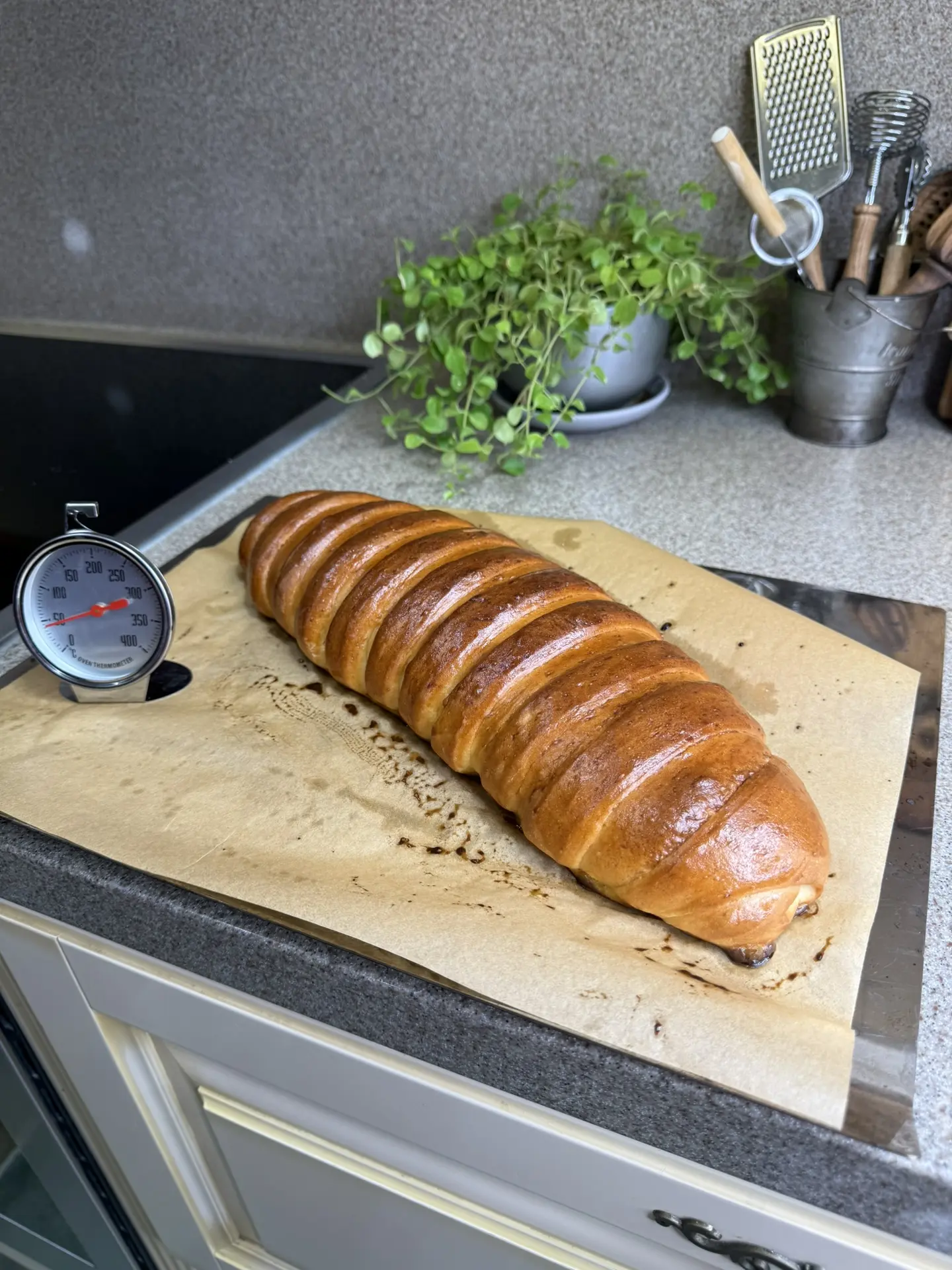8. Выпекаем кекс при 170С около 45 минут. Готовность кекса проверяем на сухую зубочистку.