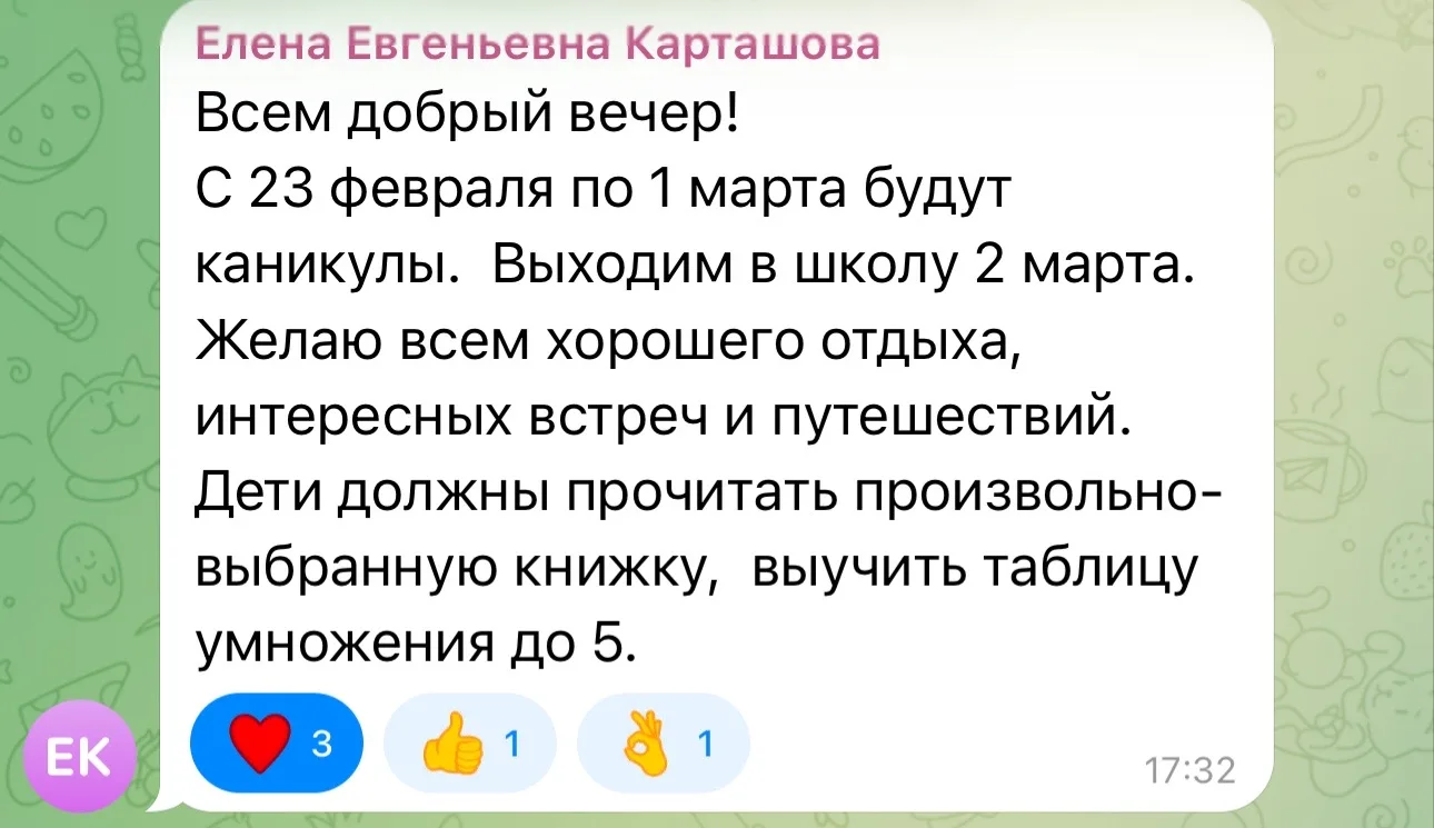 В Телеграмм пришел комментарий: