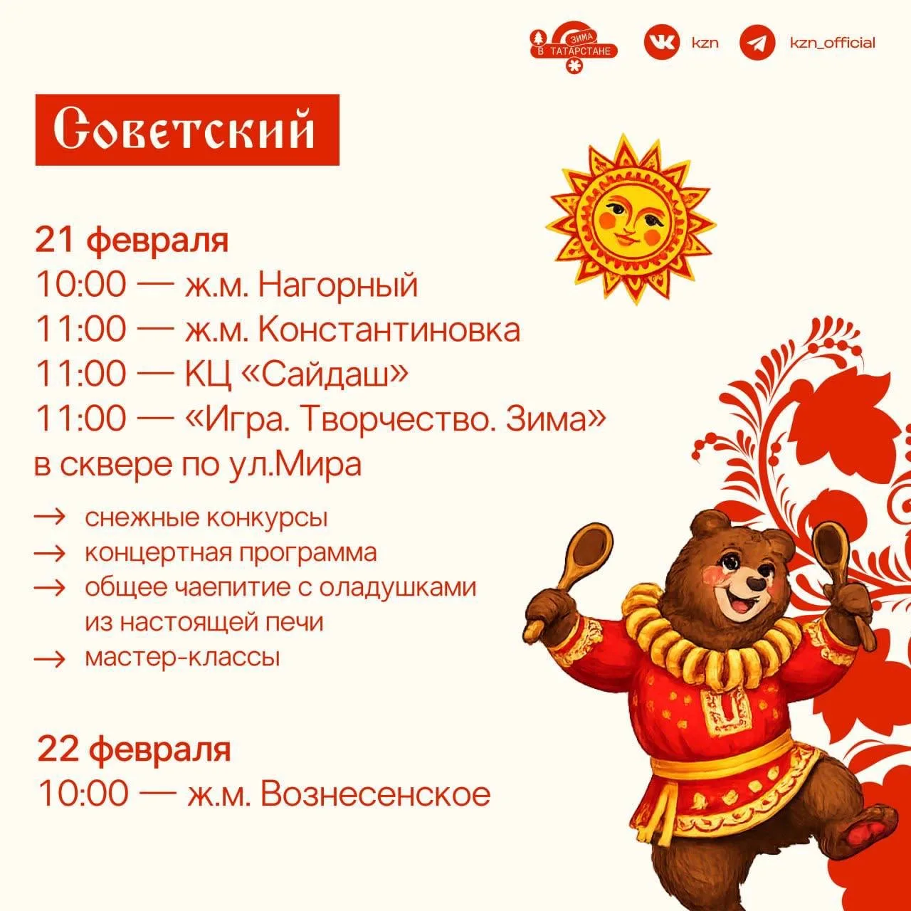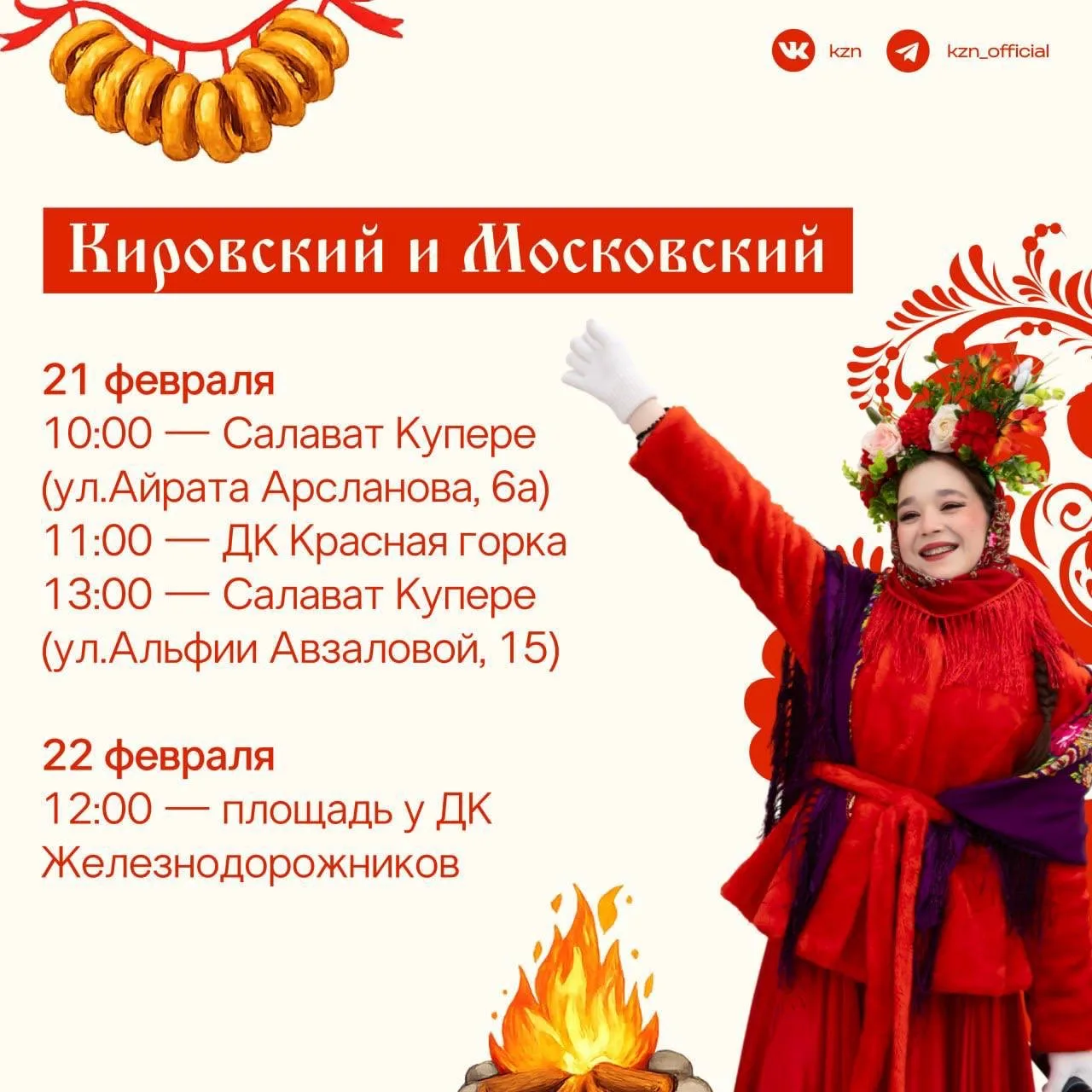 🥞 В эти выходные, в субботу и воскресенье, в Казани пройдет Масленица сразу на 17 площадках города.
