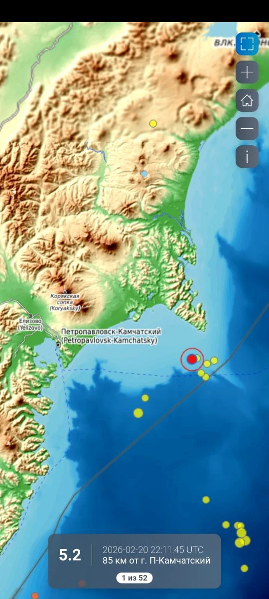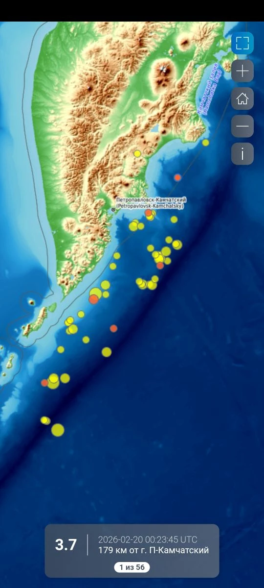 Cейсмическая обстановка в Камчатском крае по состоянию на 20 февраля 2026 г.
