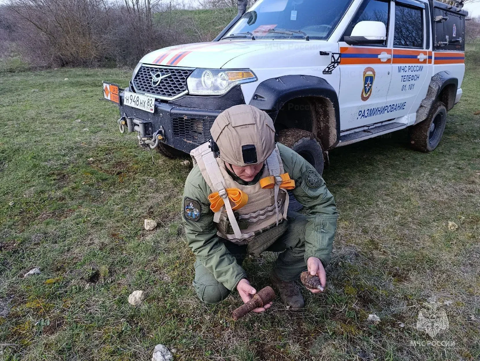 Пиротехники МЧС провели работы по обезвреживанию боеприпасов в Керчю, а также в Алуште, Ленинском и Симферопольском районах.