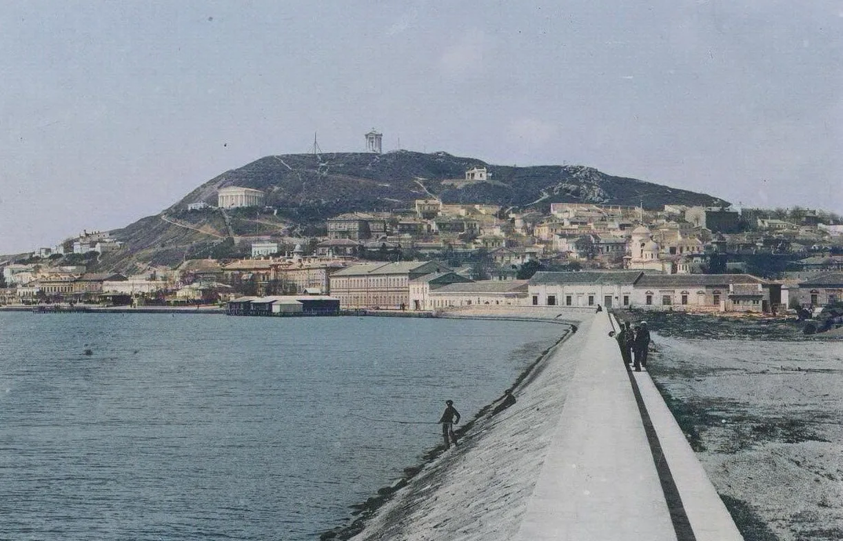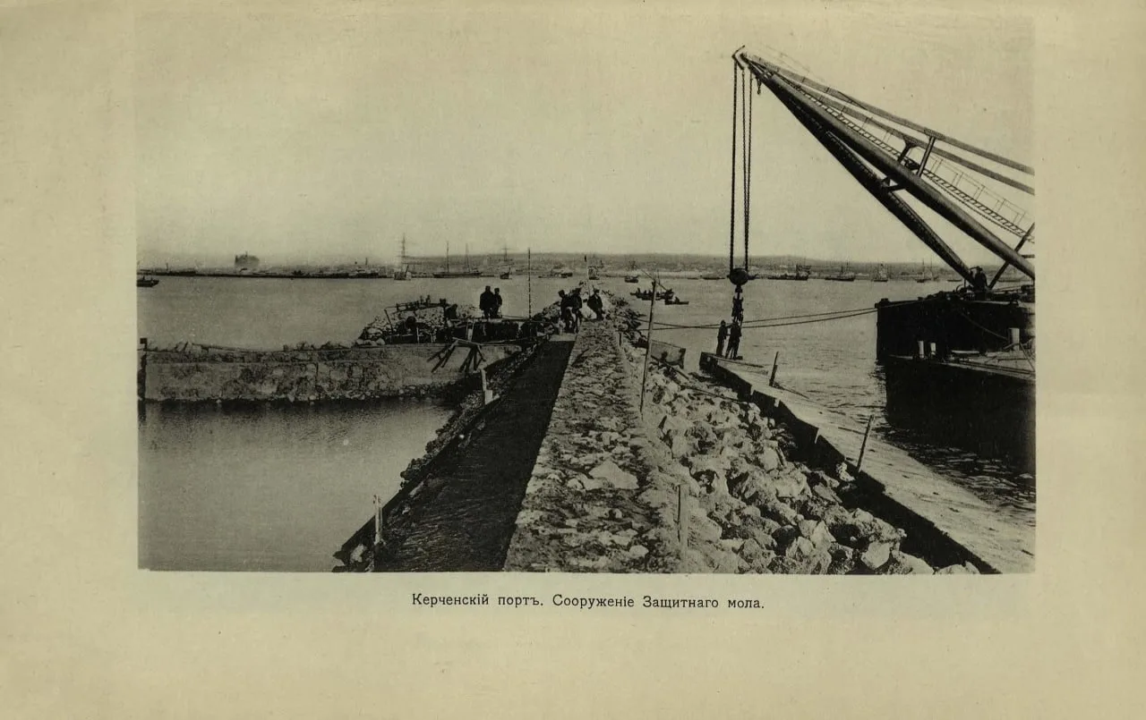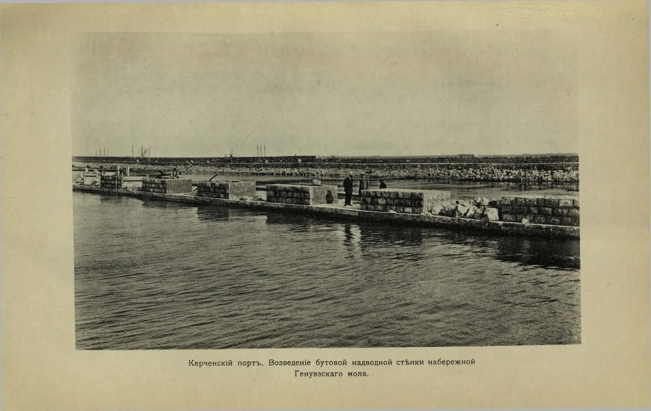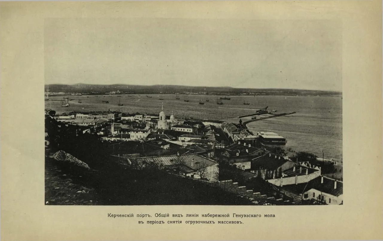 Генуэский мол был толь-только построен, когда делали эту дореволюционную фотографию центра Керчи.