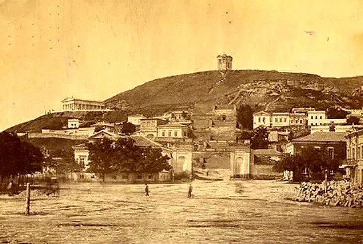 Довольно редкий снимок советской Керчи — на горе Митридат уже не музей древностей, а ресторан.