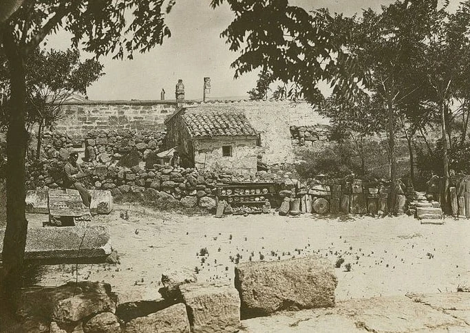 Это домик смотрителя древностей на горе Митридат. Видны каменные находки, аккуратно разложенные черепа.