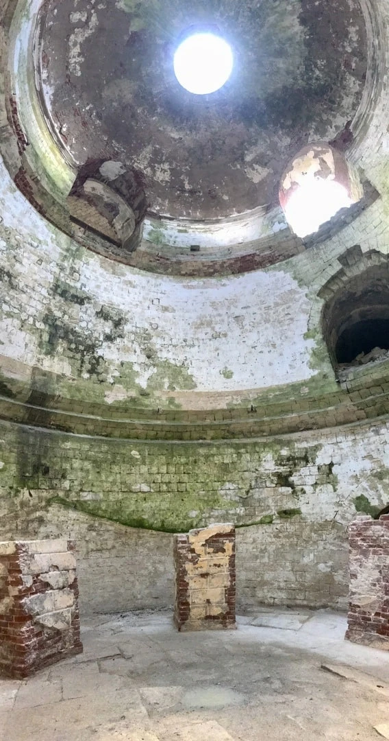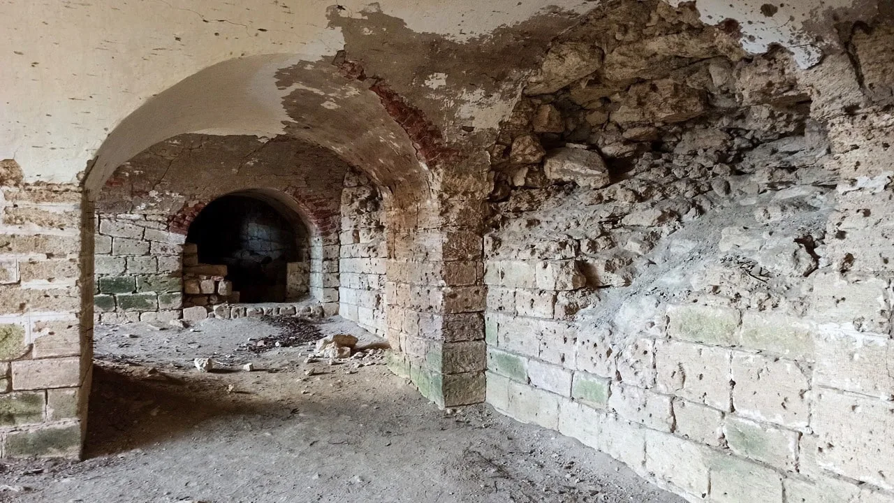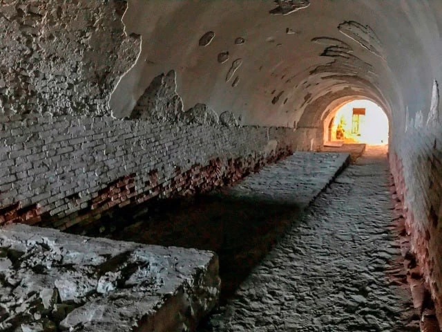 Кирпичные колонны некогда поддерживали перекрытия в этом величественном подземном трёхэтажном укреплении.