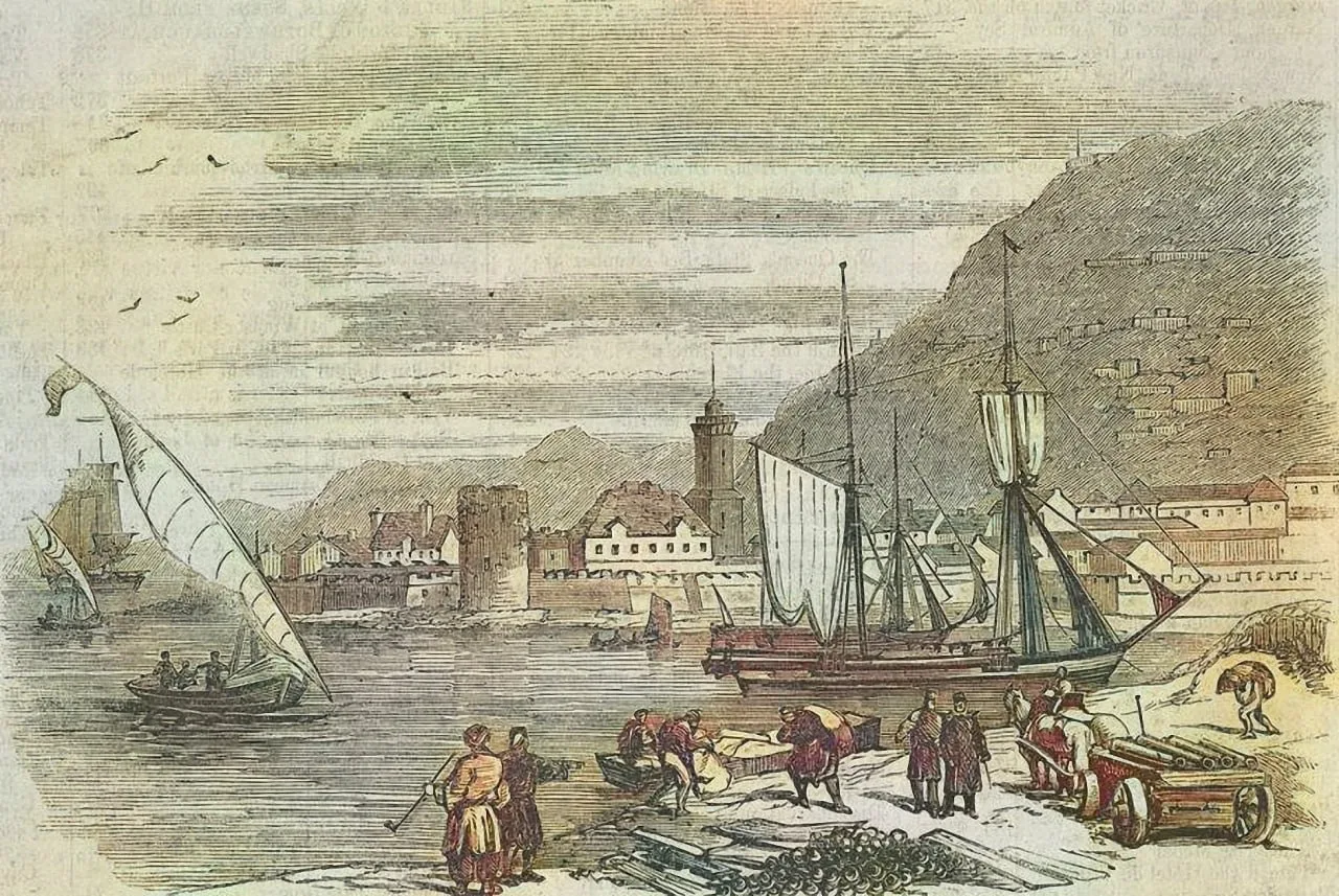 Из оккупированной во время Крымской войны Керчи союзники вывозят награбленное. Гравюра 1855 года.