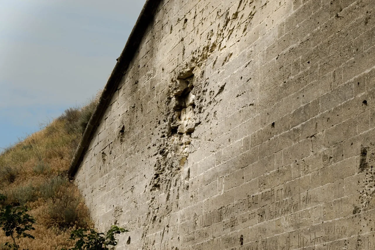 Двери, ведущие в сухой ров Керченской крепости, простреляны, как будто они сделаны не из толстого железа, а из жести...