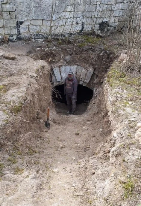 Попасть в этот подезмный ход долгое время было невозможно. С одной стороны в советское время построили стену, с другой — завалы еще с войны.
