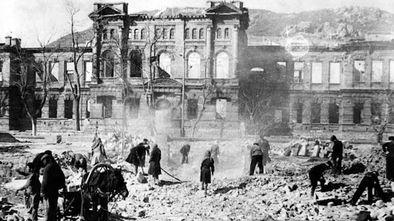 Так бывшая женская гимназия выглядела после освобождения города в 1944 года.