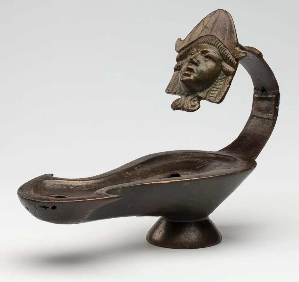 Этот светильник с театральной маской, скорее всего, был создан в Древнем Риме на заре нашей эры.