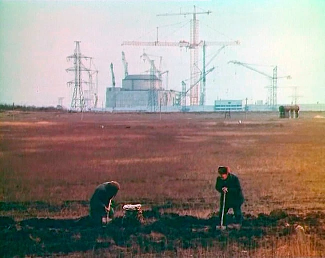 Заброшенное строительство Крымской АЭС в Щёлкино на фотографии 1990 года.