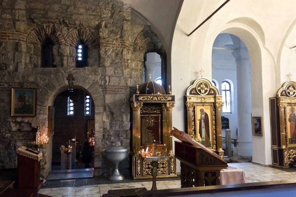 Так внутри храма Иоанна Предтечи выглядит граница между древними стенами и "новоделом", которому, правда, уже около 200 лет...