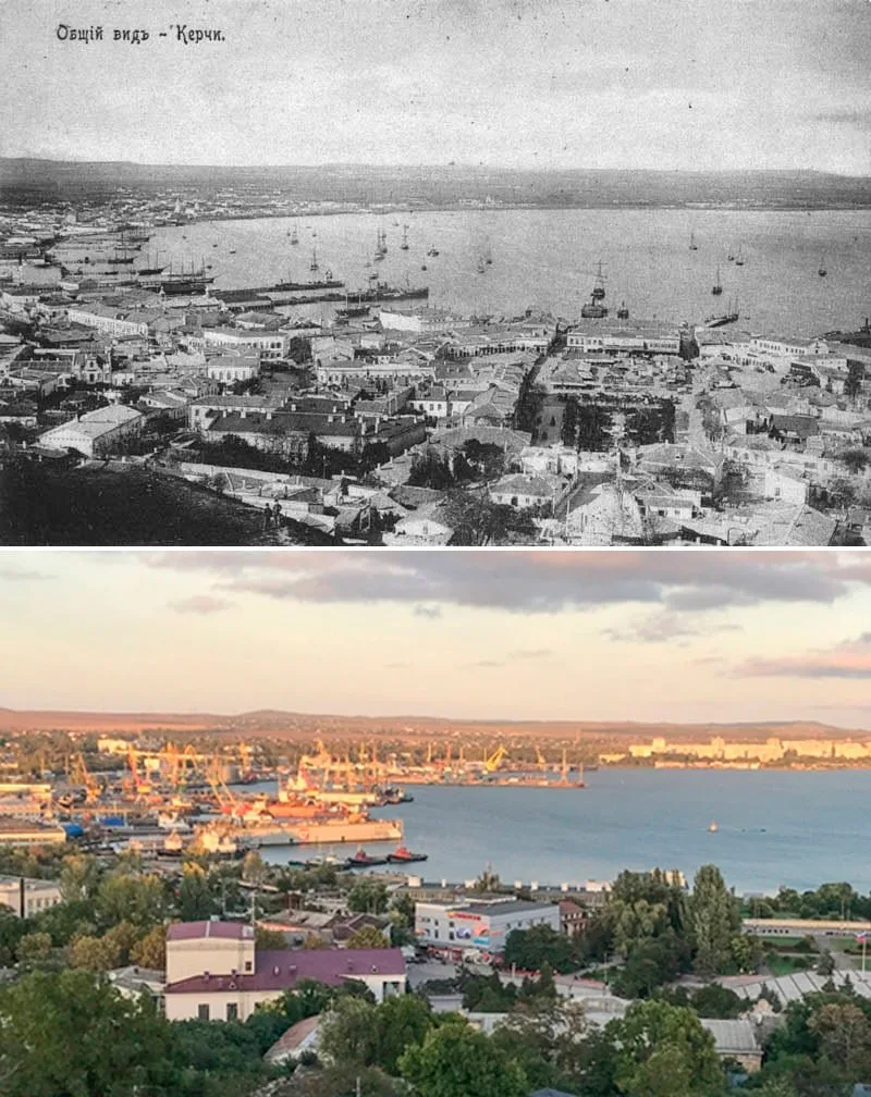 Керченская бухта на фотографиях, между которыми чуть больше ста лет.