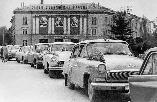 На некоторых сайтах эта фотография из советской Керчи подписана как свадебный кортеж.