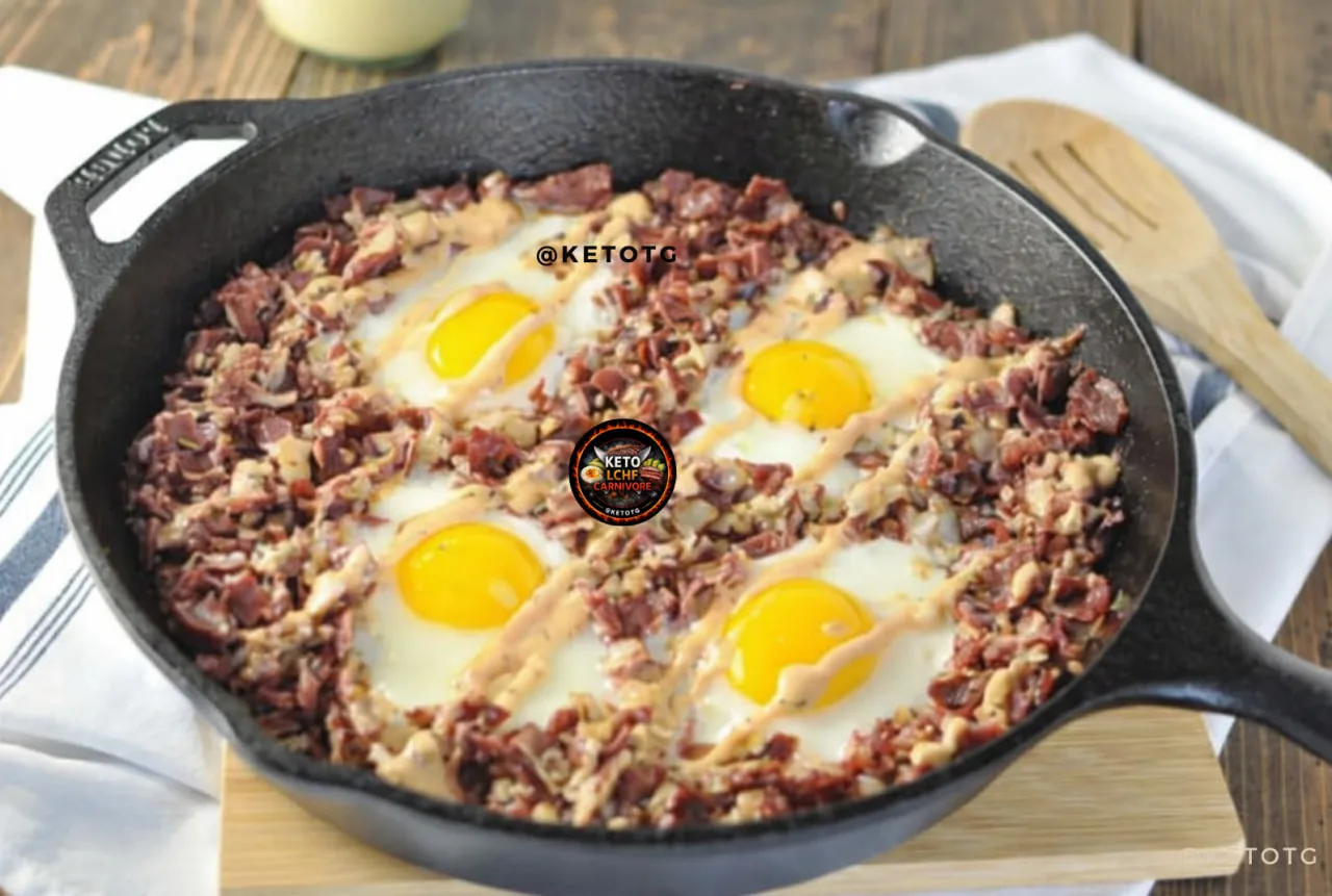 6️⃣Разбейте яйца на сковороду и дайте им слегка поджариться — глазуньей или в виде яичницы-болтуньи, на ваш вкус.