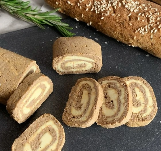 4️⃣Далее берем небольшую часть начинки и заворачиваем в рулетик.