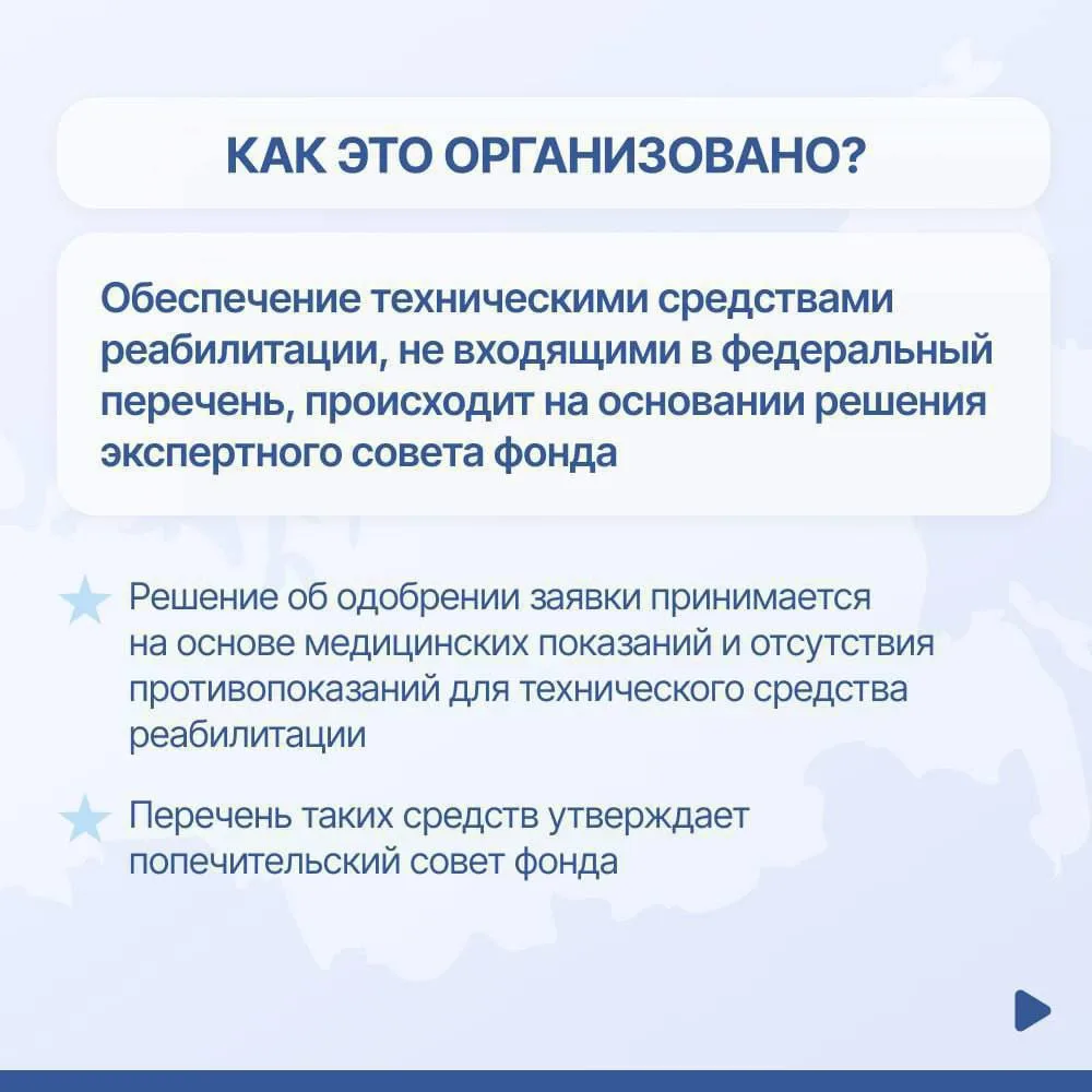 ✔️ Это средства реабилитации, не входящие в федеральный перечень: протезы и кресла-коляски для занятий спортом, вертикализаторы и другие.
