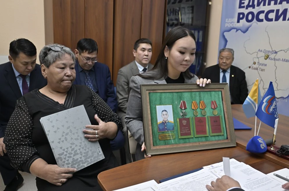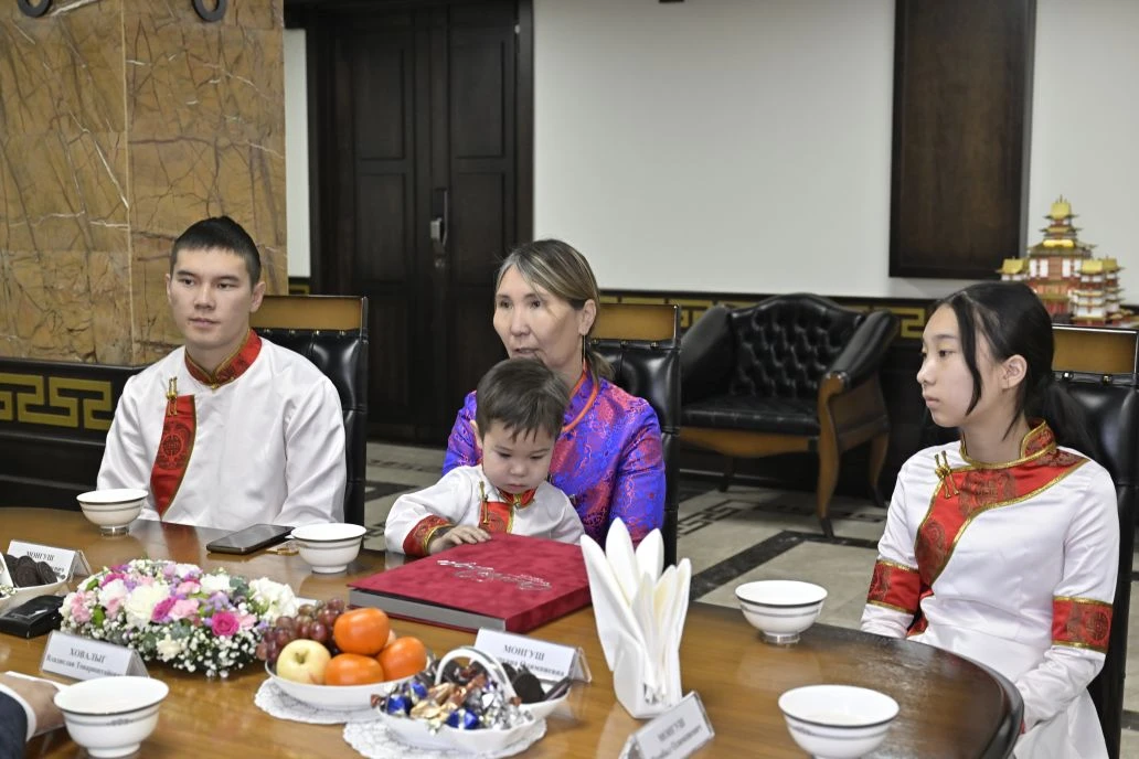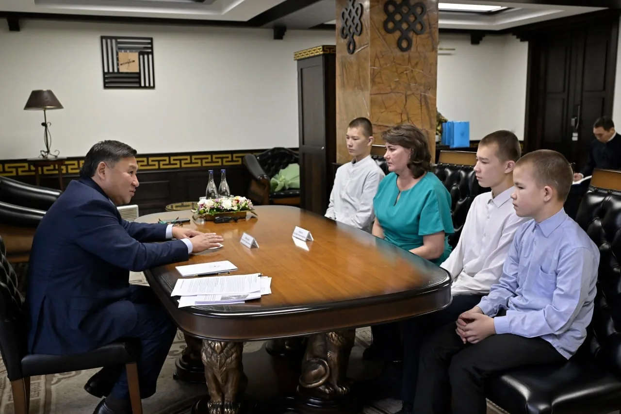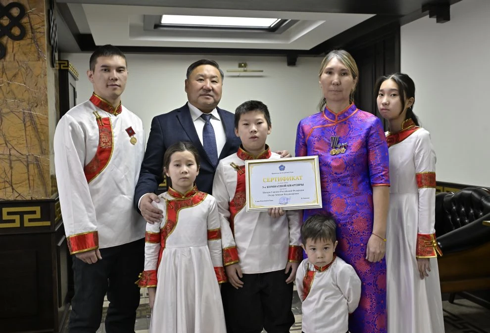 Дети тоже очень общительные и серьезные не по возрасту. Один из сыновей увлекается боксом и борьбой. Окажем ему помощь с тренировками у именитых спортсменов Тувы. Глава семьи и старший сын являются участниками СВО. Отец сейчас находится на передовой, а сыну сегодня вручил медаль «Участнику СВО». Также вручил семье сертификат на приобретение трехкомнатной квартиры.