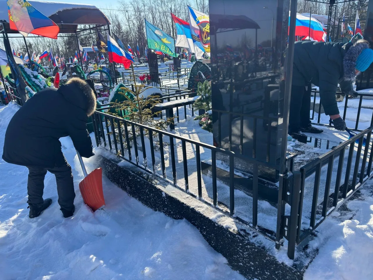 В новогодние праздники молодёжь Хабаровского края помогла расчистить от снега захоронения ветеранов специальной военной операции Тарасова Владимира Николаевича и Тарана Анатолия Васильевича.